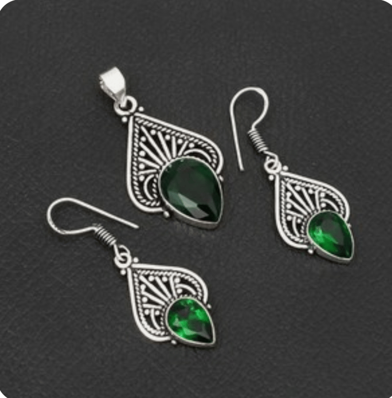 925 SILVER SET OF PENDANT AND EARRINGS WITH EMERALD COLOUR CRYSTALS Condition: Good - Refer Images 0 FC 163099+17