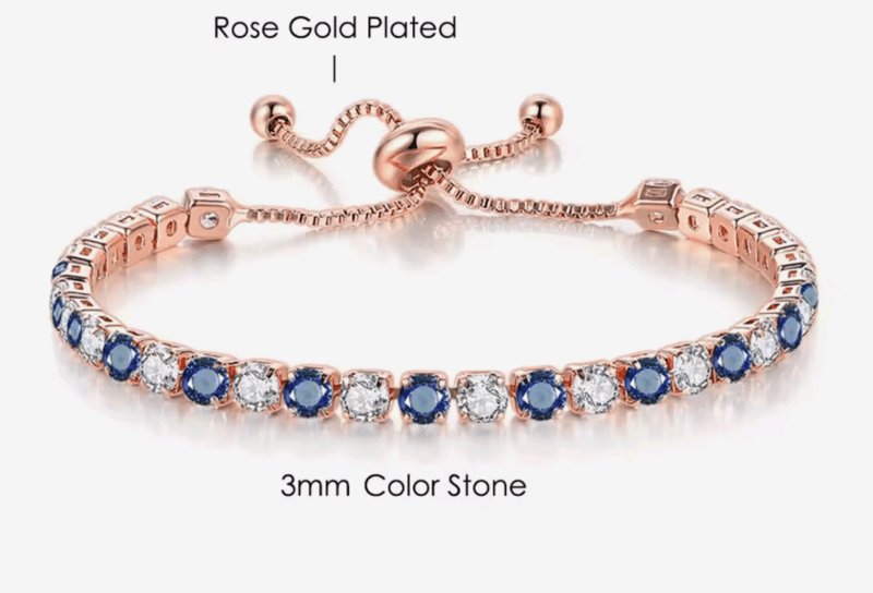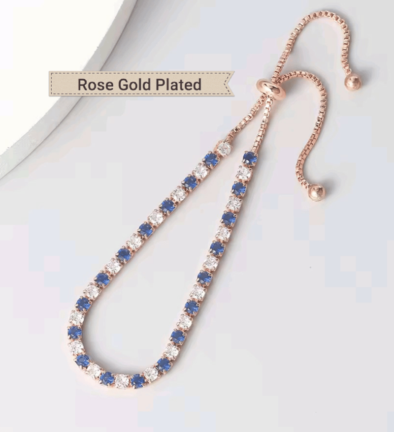 ROSE GOLD PLATED ADJUSTABLE BLUE WHITE CRYSTAL BRACELET