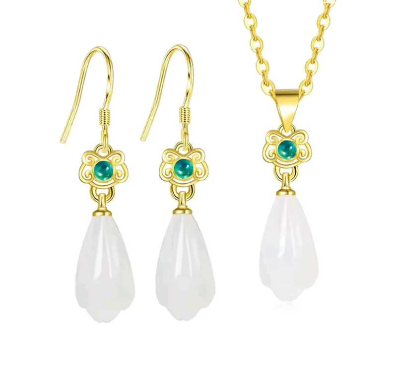 SET OF NECKLACE AND EARRINGS GOLD COLOUR WITH STONES AND CRYSTALS