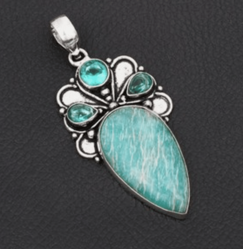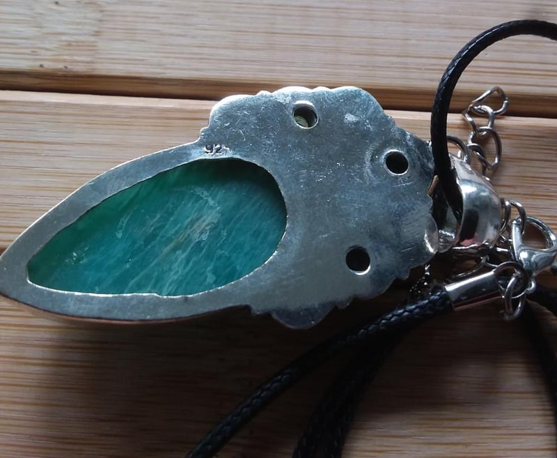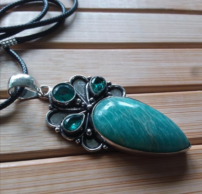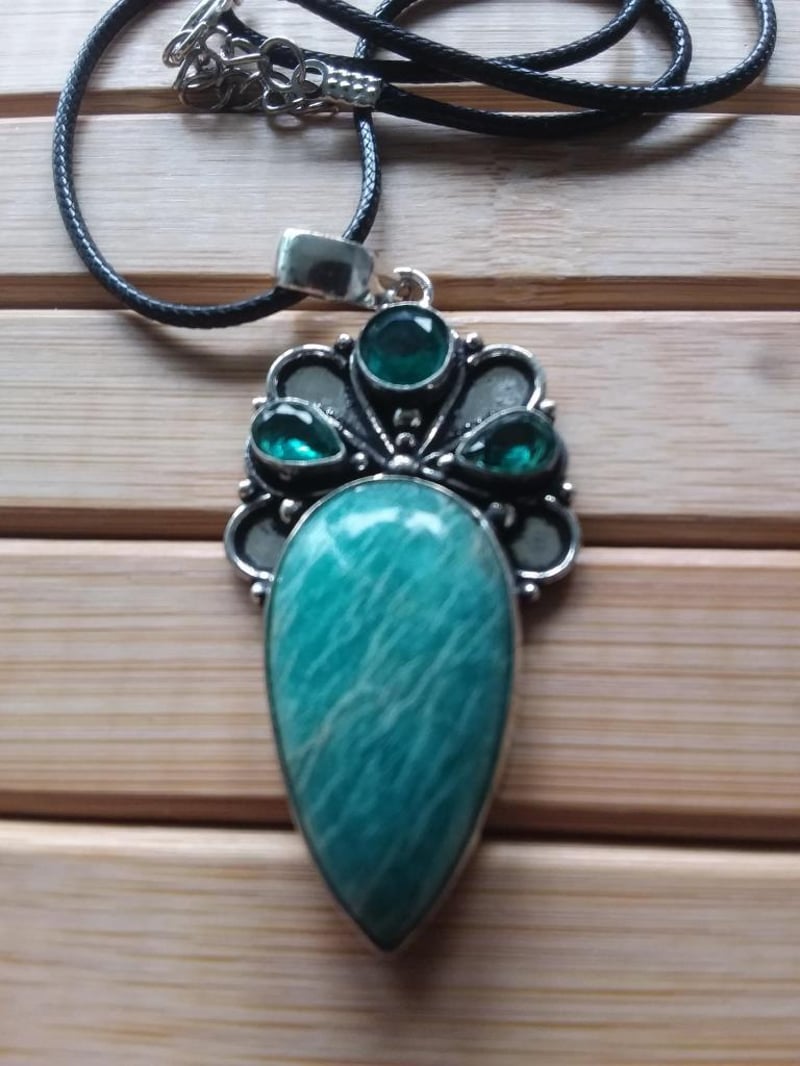 925 SILVER ETHNIC STYLE GREEN GEMSTONES PENDANT WITH BLACK CORD