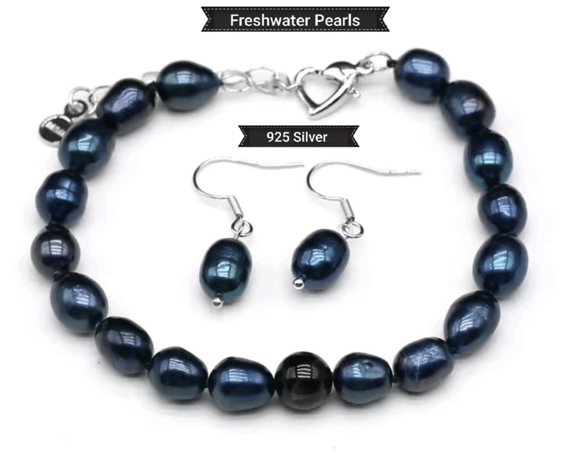 TAHITIAN BLACK RAINBOW FRESHWATER BRACELET AND EARRINGS SET