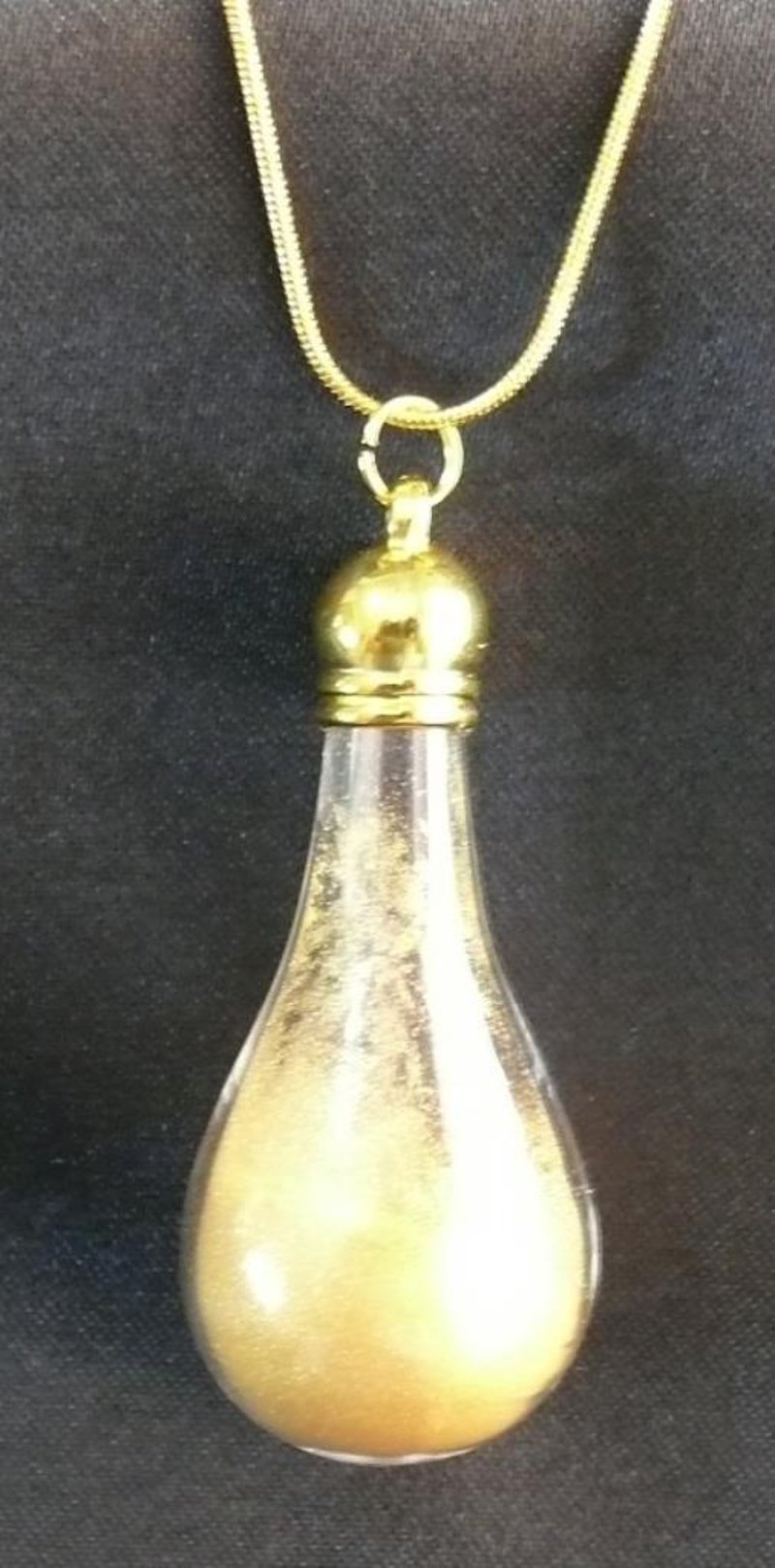 24CT. GOLD DUST IN TEAR SHAPE GLASS PENDANT, 60MM(H).