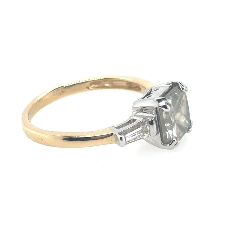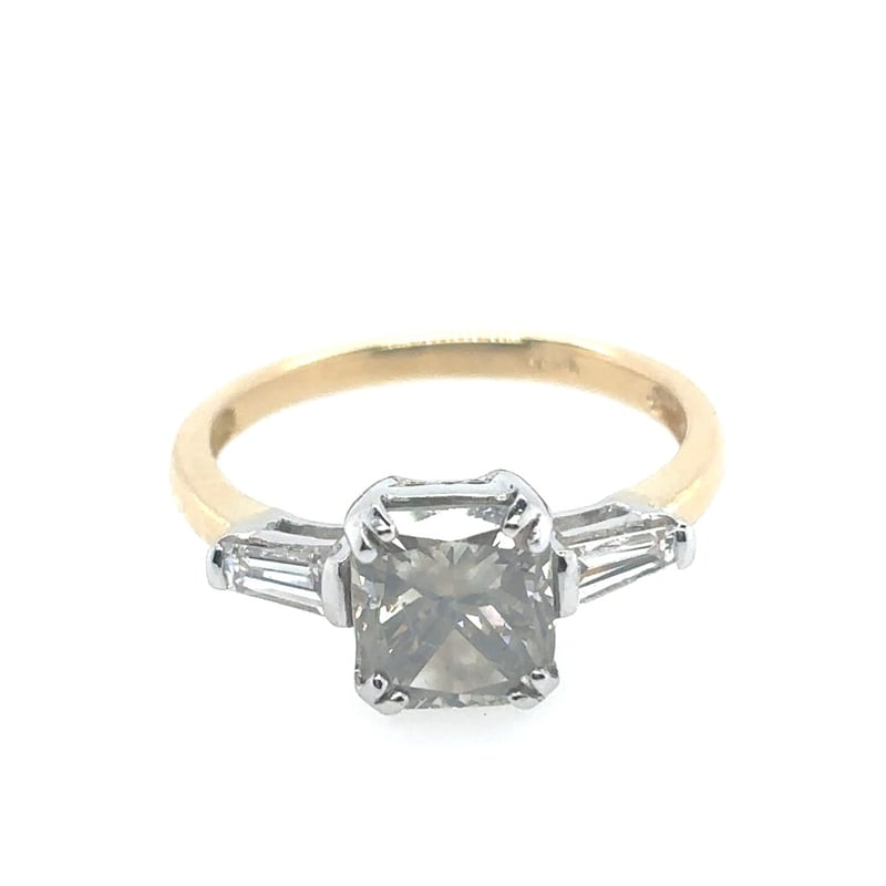 18CT YELLOW AND WHITE GOLD DIAMOND RINGFeaturing A Cushion Brilliant Cut Diamond, Claw Set, 2.10Ct In Weight (7.4 X 6.8 X 5.1 Mm), S11 In Clarity And Fancy Light Yellowish Brown In Colour. 2 Tapered Baguette Cut Diamonds, Bar Set, 0.40Ct In Total Combined Weight, Vs In Clarity And G/H In Colour.Ring Is 3.53 Grams In Weight And Finger Size N ½.Condition: Good - Refer To ImagesThis valuation has been conducted by an independent third-party professional. The valuation amount is an assessment by the issuing valuer and does not reflect the auction value of the item.Any inquiries regarding the valuation should be directed to the issuing valuer (refer to contact details on the certificate), as Lloyds Auctions has no affiliation or influence over the valuation, the valuer, or the stated amount.Insurance Replacement Valuation Amount: $36,950.00163083+7