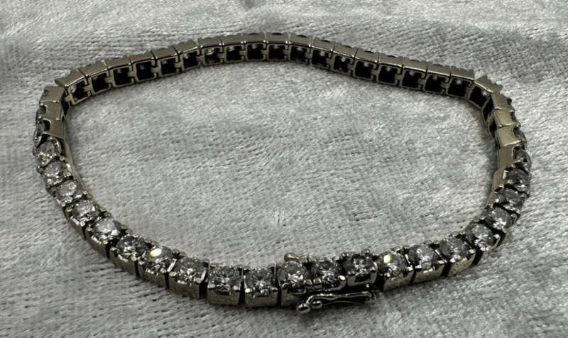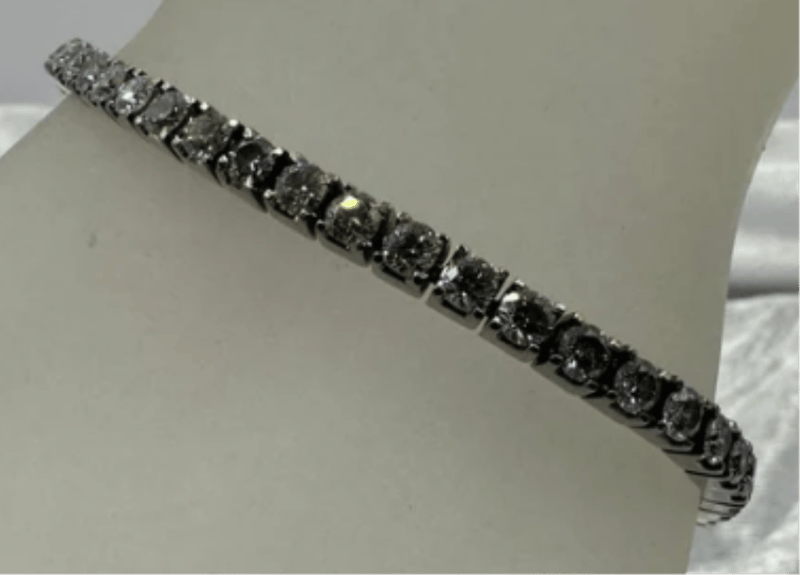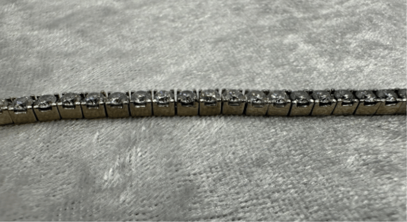 18K WHITE GOLD 6.44 TCW DIAMOND BOX TENNIS BRACELET Round brilliant natural mined diamonds. Diamond quality: F-G colour and SI1 clarity minimum. 46 x 0.14 ct rd brilliant stones. 6.44 Total carat weight Setting material: 18K white gold Chain length: 17.5cm 14.5 grams weight Manufacture type: Casting and hand finished. CROSSDOCK 163095+8