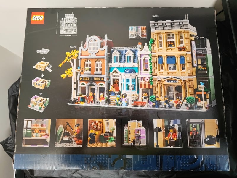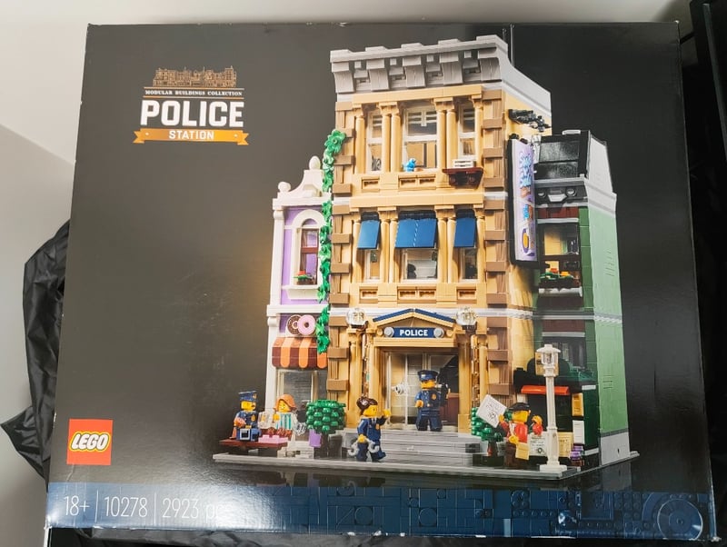 LEGO MODULAR BUILDINGS POLICE STATION SET #10278 Lego Set #10278 From The Modular Buildings Collection Featuring A Detailed Police Station Structure With Accompanying Townscape Buildings. The Set Includes A Three-Story Police Station With Golden Facade, Columned Entrance, And Working Interior Spaces, Flanked By Complementary Modular Buildings Including A Book Store, Residence, And Additional Street-Level Retail. Features Minifigures, Detailed Furnishings, And Integrated Architectural Elements Representative Of Classic Urban Streetscapes. Condition: Good - Refer To Images 584522+269