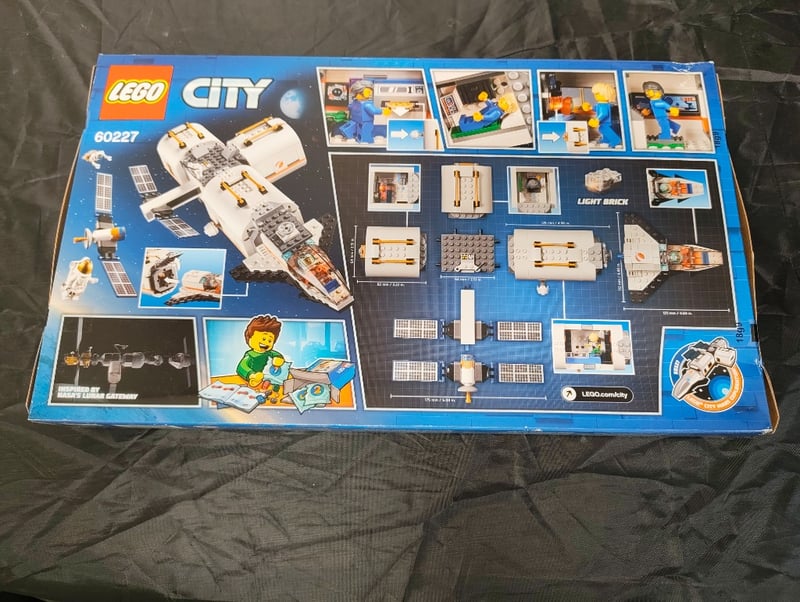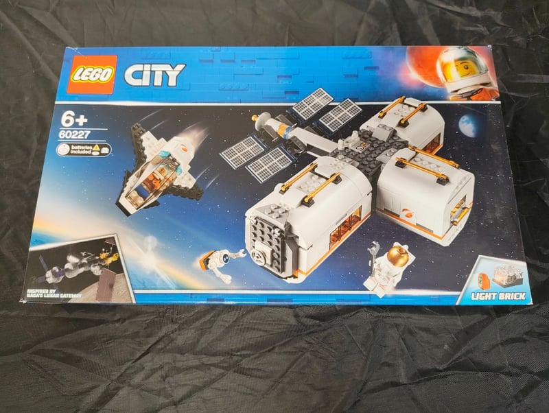 LEGO CITY SPACE STATION SET 60227 WITH LIGHT BRICK Item Size: Height: 30cm, Width: 50cm, Depth: 8cm, Weight: 4Kg Lego City Space Exploration Set 60227 Featuring A Modular Lunar Station With Spacecraft, Solar Panels, And Astronaut Minifigures. Includes Light Brick Functionality For Illuminated Play. Original Factory-Sealed Box With Comprehensive Instruction Manual And Complete Component Inventory Visible On Packaging. Space-Themed Construction Set Designed For Ages 6+. Condition: Good - Refer To Images 655508+200