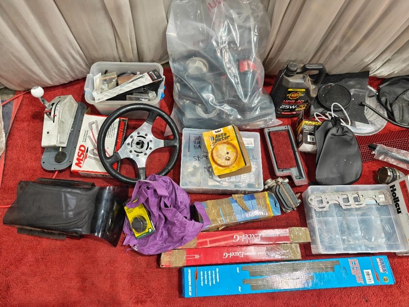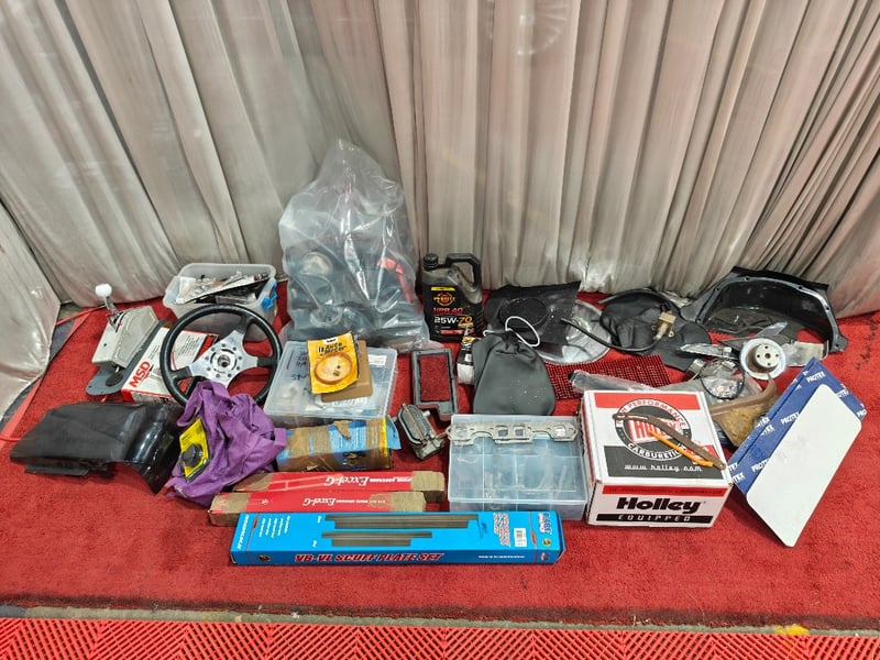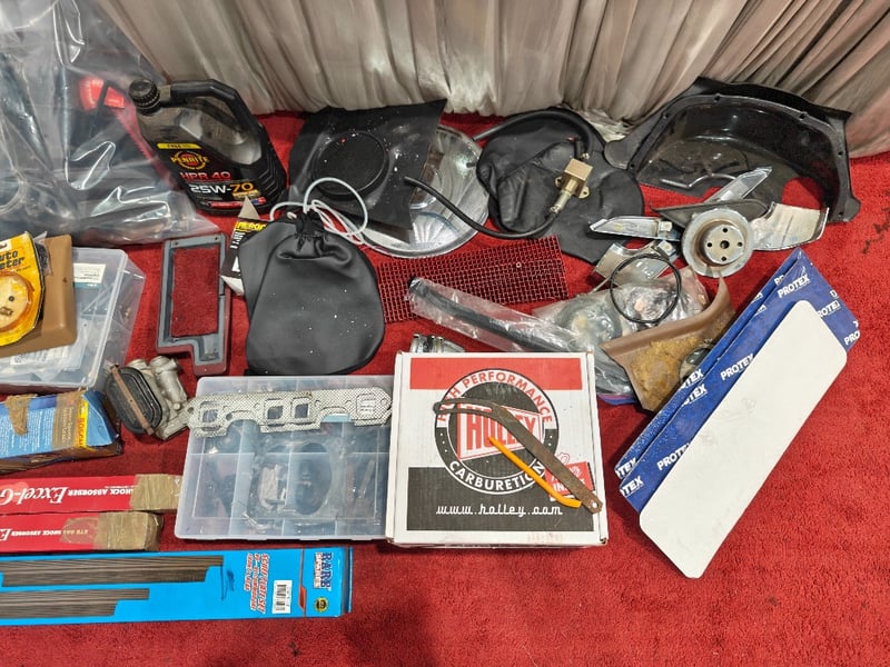 Boot full of assorted spare parts for the engine and body / interior & including original set of seats.