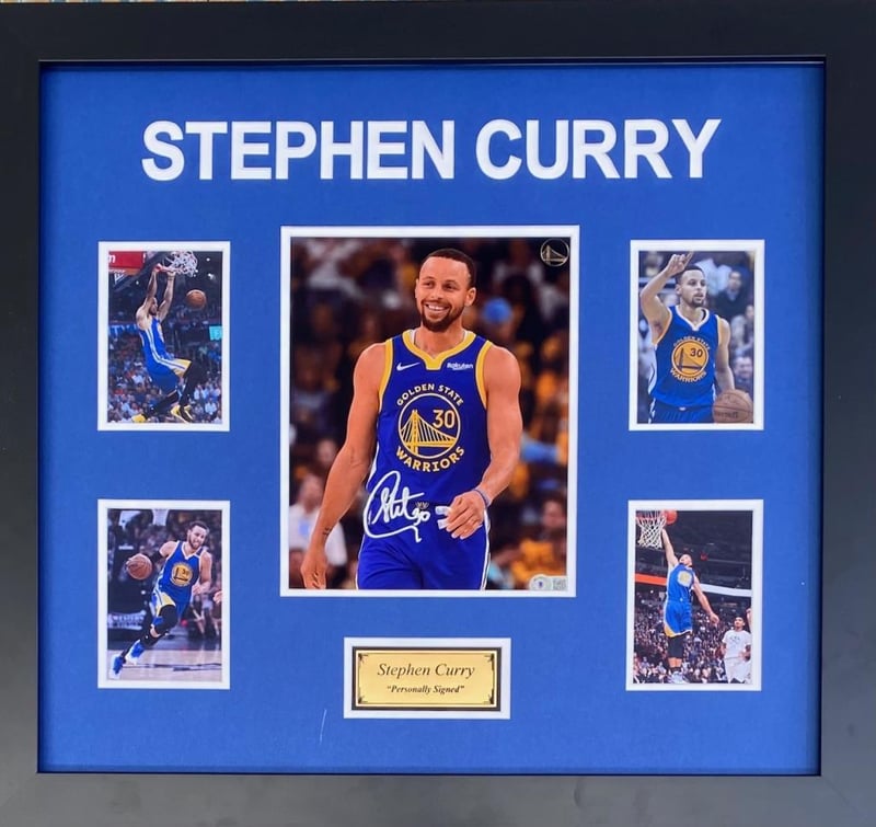 STEPHEN CURRY PERSOANLLY SIGNED 10" X 8" PHOTOGRAPH (BECKETT COA)Framed Using Double Mats, 4 Unsigned Photographs And A Plaque. Hand Signed By Stephen Curry Using A Silver MarkerAccompanied By A Certificate Of Authenticity From BeckettCondition: Good - Refer Images498066+13