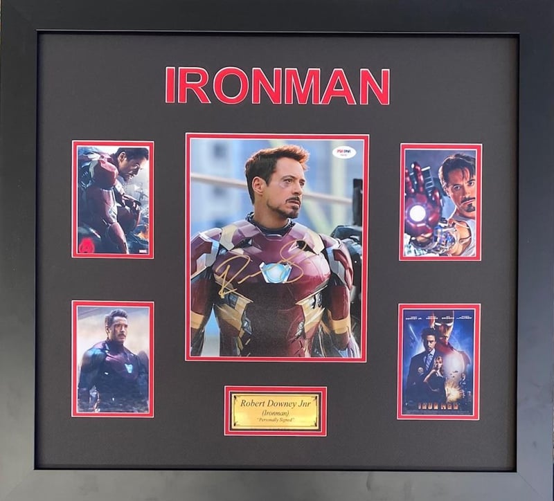 ROBERT DOWNEY JNR (IRONMAN) PERSOANLLY SIGNED 10" X 8" PHOTOGRAPH (PSA/DNA COA)Framed Using Double Mats, 4 Unsigned Photographs And A Plaque. Hand Signed By Robert Downey Jnr Using A Gold MarkerAccompanied By A Certificate Of Authenticity From Psa/DnaCondition: Good - Refer Images498066+19
