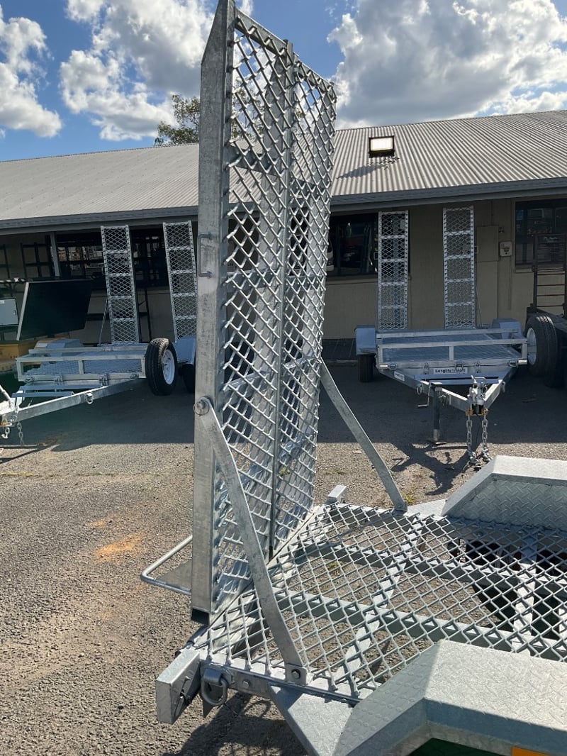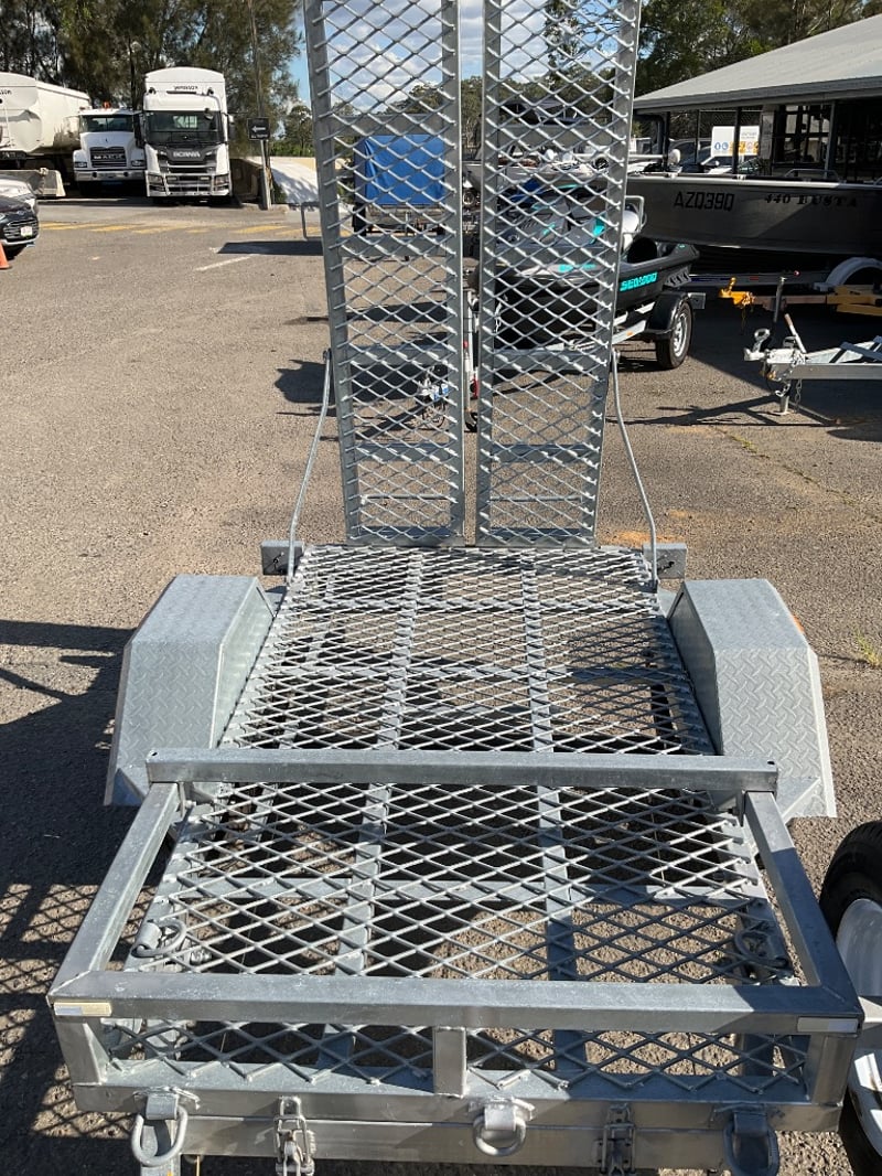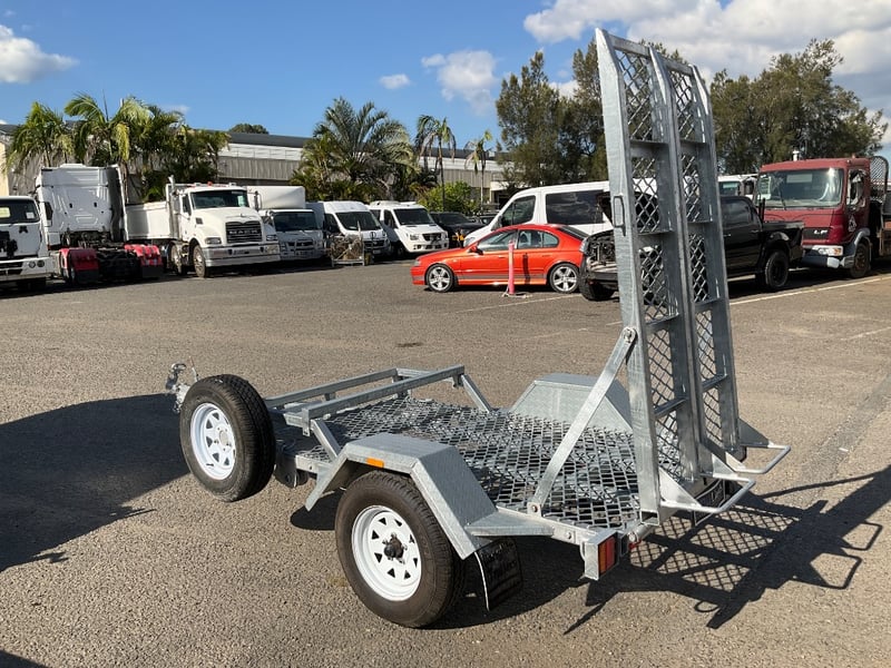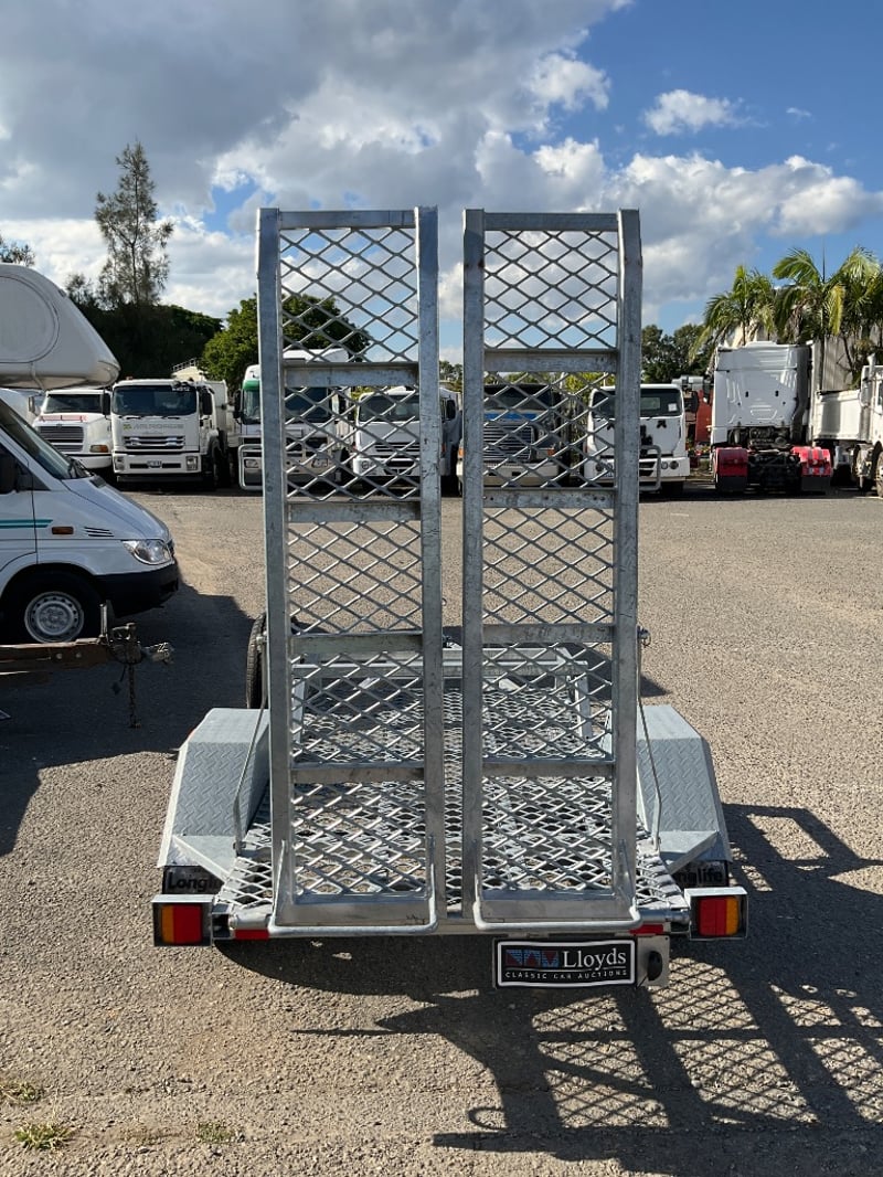 Description: unused plant trailer without compliance plate, tilting platform, dove tail ramps, brakes, spare tyre, jack stand, LED tail lights,.