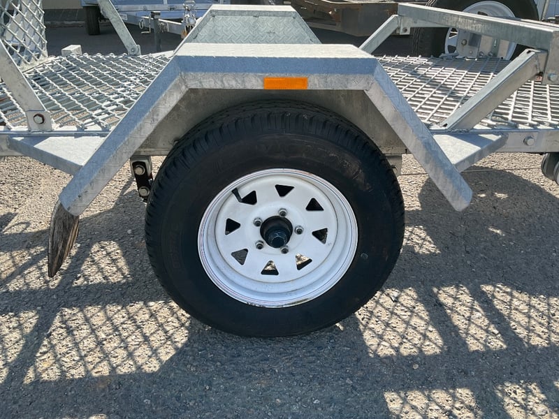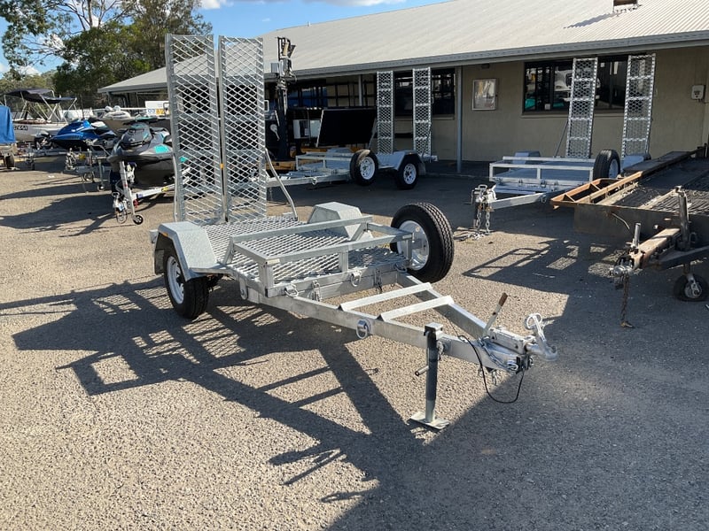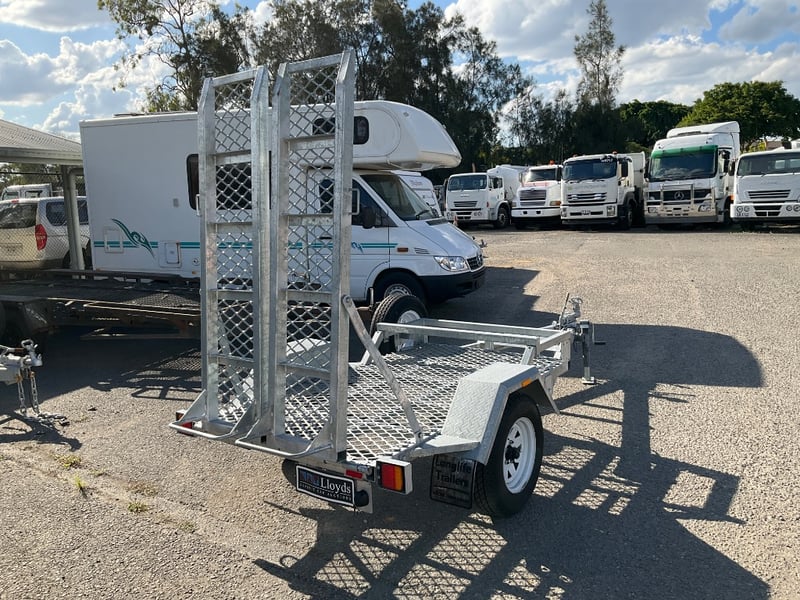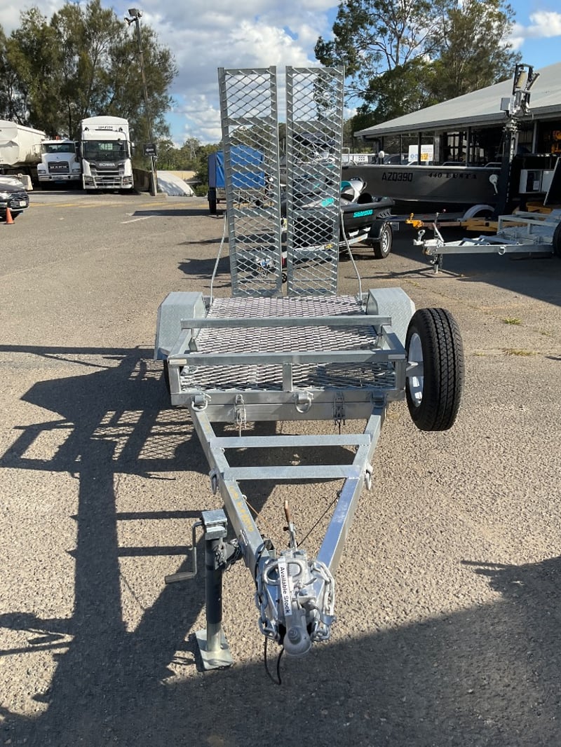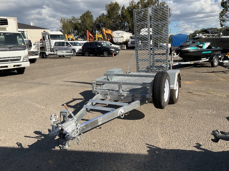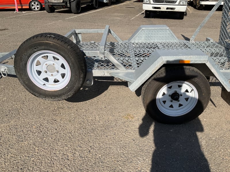 Description: unused plant trailer without compliance plate, tilting platform, dove tail ramps, brakes, spare tyre, jack stand, LED tail lights,.