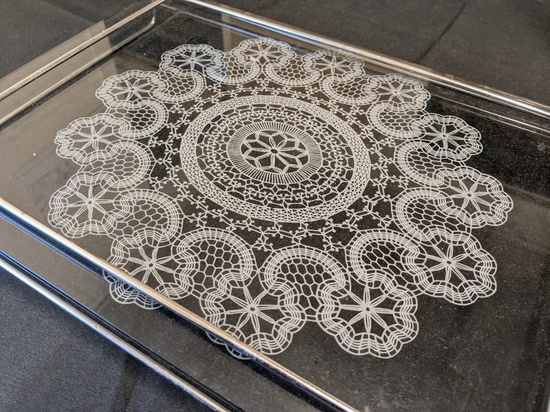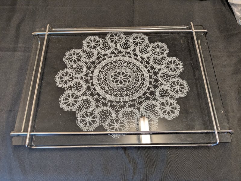 KITCHEN GLASSWARE SERVING TRAY WITH DOILY MOTIF