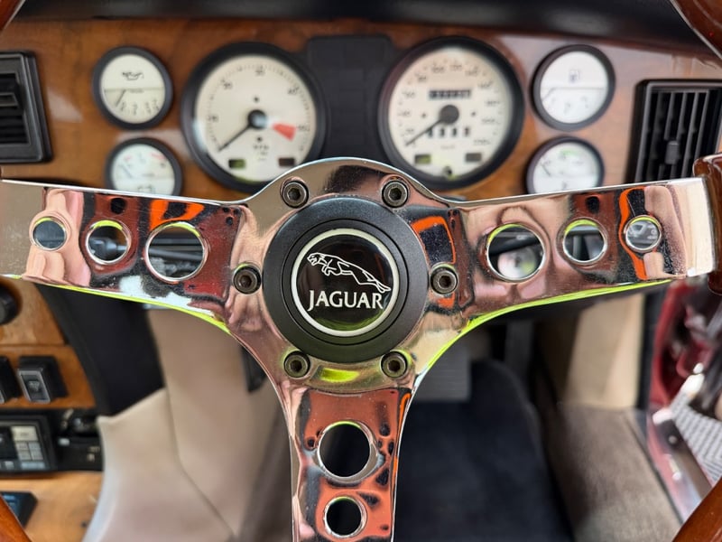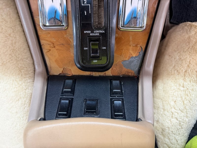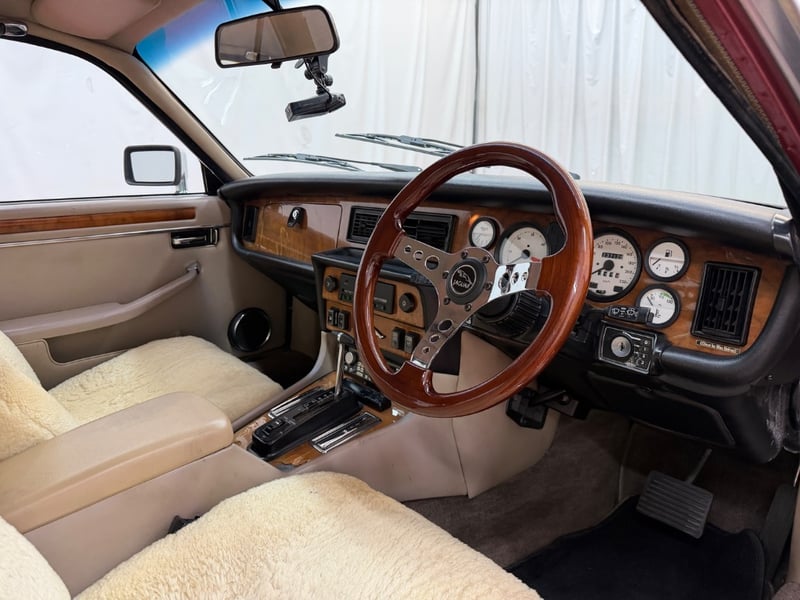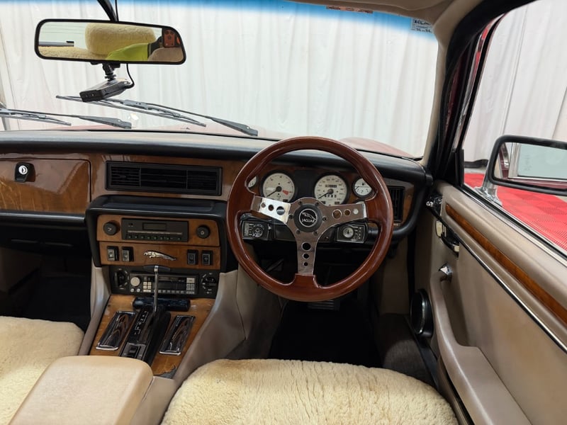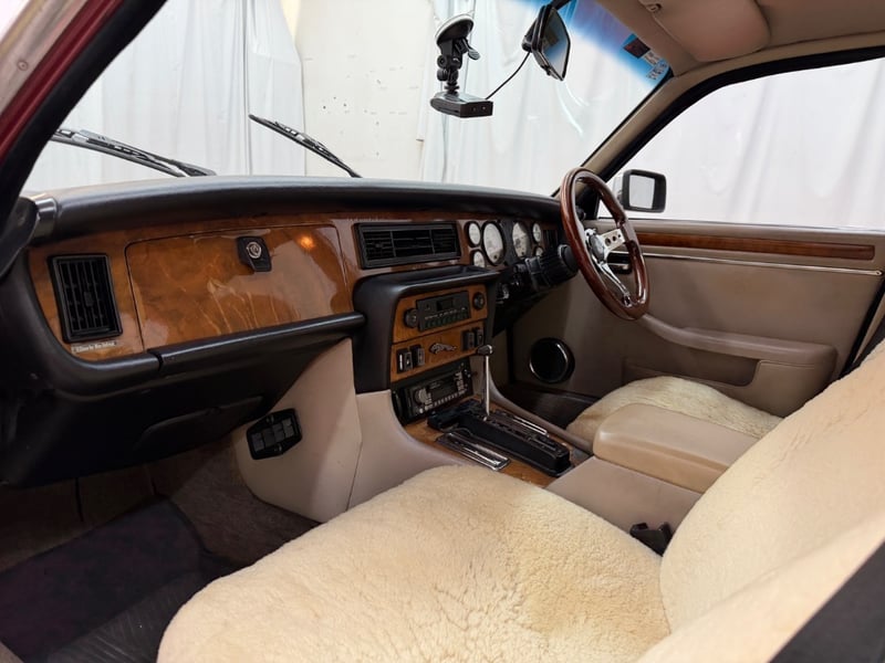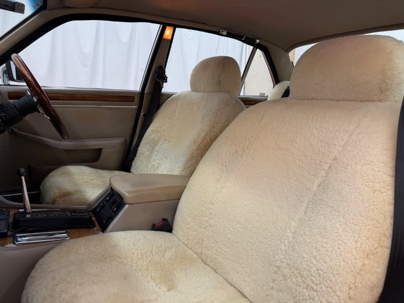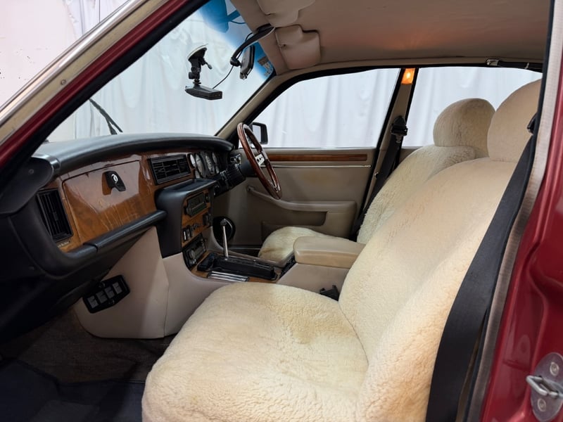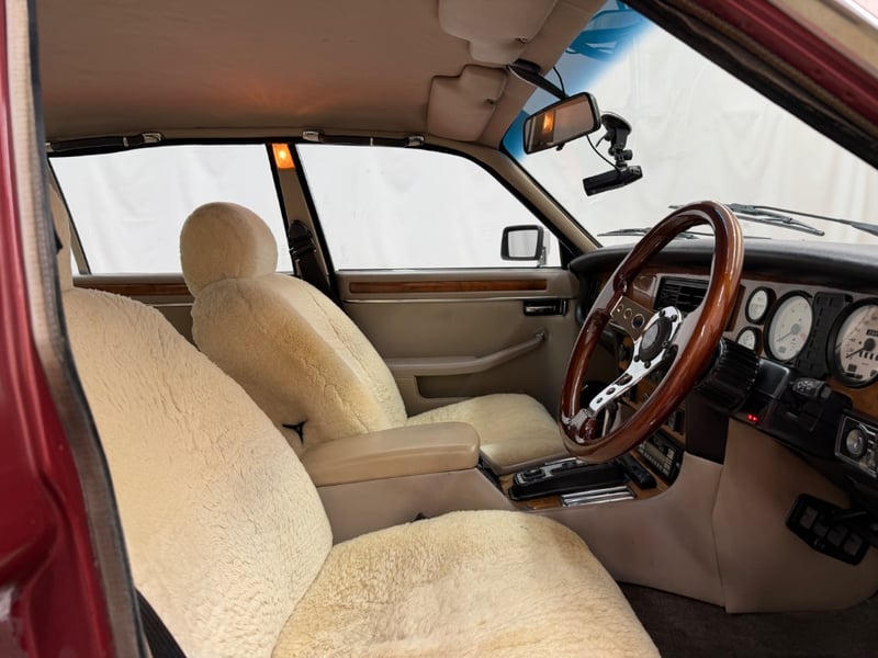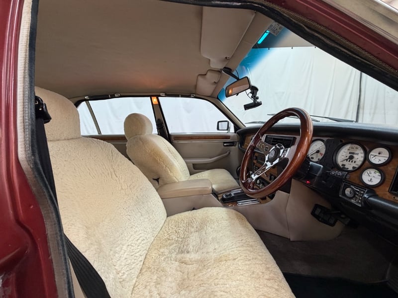 1985 Jaguar XJ6 Some spots of rust and bubbling, minor paint solace and scratches. Upholstery condition unknown (underneath sheepskin covers), drivers exterior door handle sticky, minor trim dints, some fade and light stains to leather, door cards, timber laminate peeling around center console. Inspection recommended.