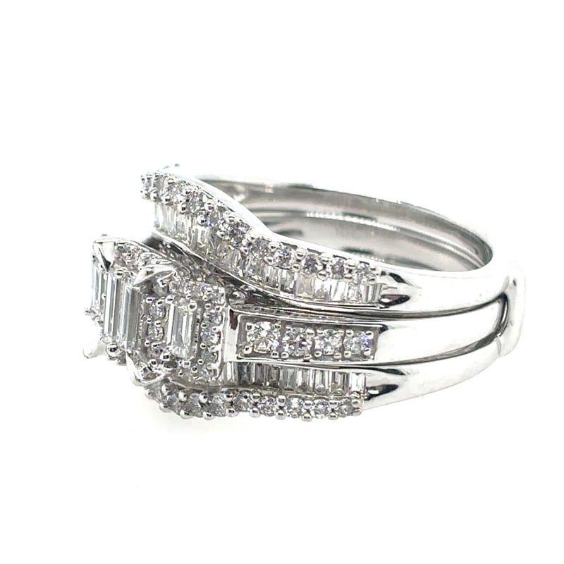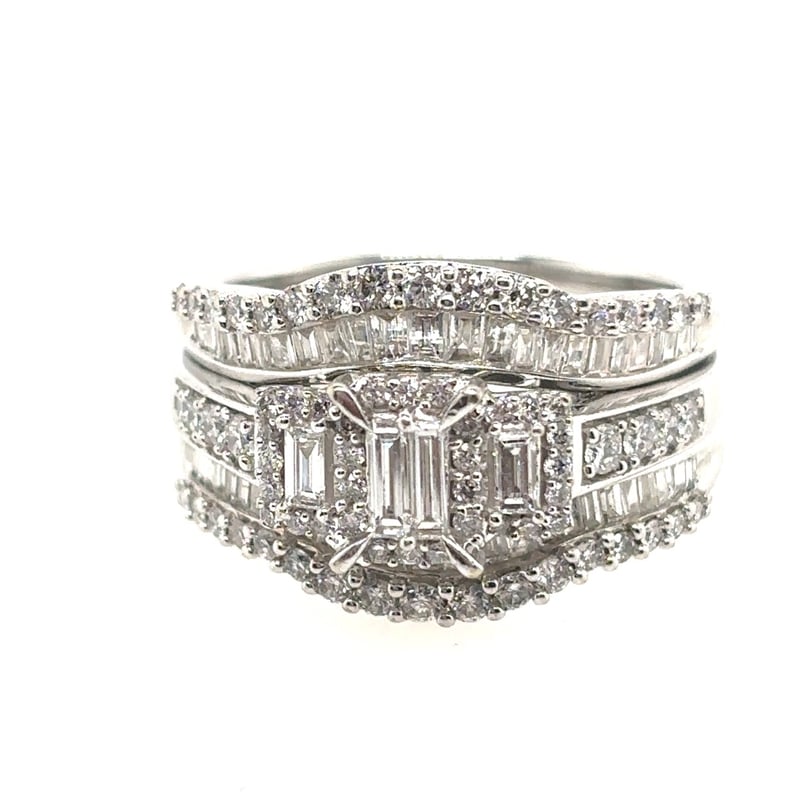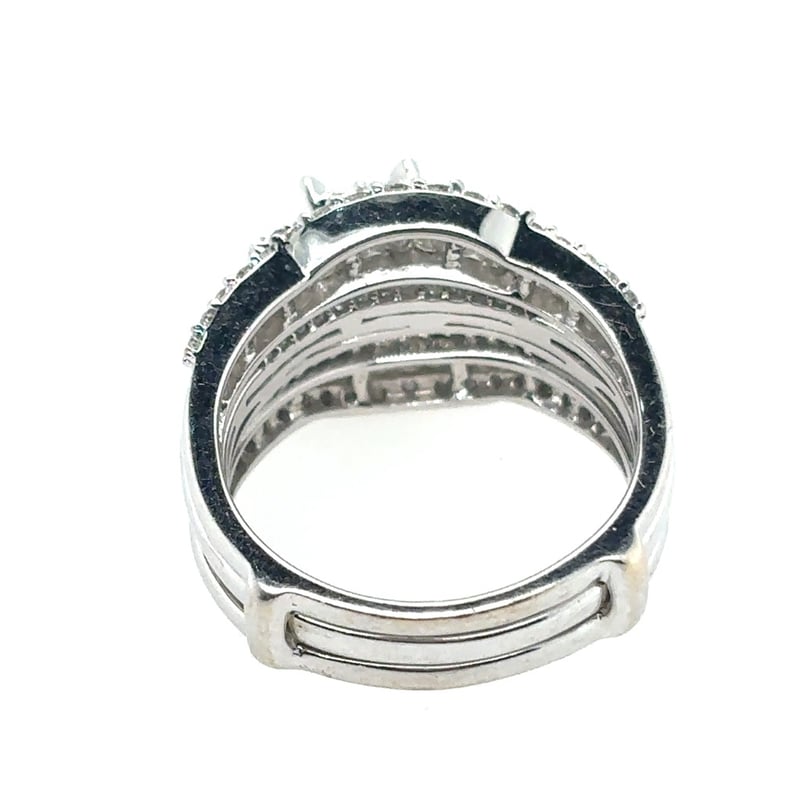 14Ct White Gold (Xrf Tested) Diamond Enhancer Ring. Featuring 48 Tapered Baguette Cut Diamonds, Channel Set, Approximately 0.35Ct In Total Combined Weight, Si/P1 In Clarity And G In Colour. 34 Round Brilliant Cut Diamonds, Claw Set, Approximately 0.20Ct In Total Combined Weight, Vs/Si In Clarity And G In Colour. Ring Is 5.03 Grams In Weight And Finger Size O.