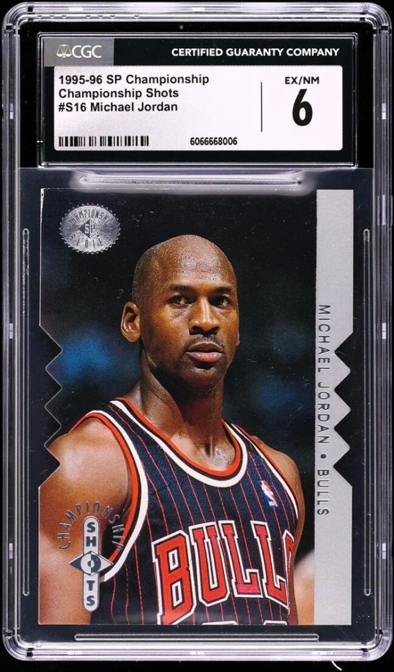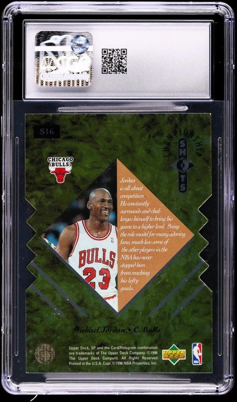 A 1995 Sp Championship Shots Die-Cut Card Of Michael Jordan, Card #S16. Professionally Authenticated By Cgc. The Die-Cut Design Provides A Visually Distinctive Format, Enhancing Its Display Appeal Within Any Collection.