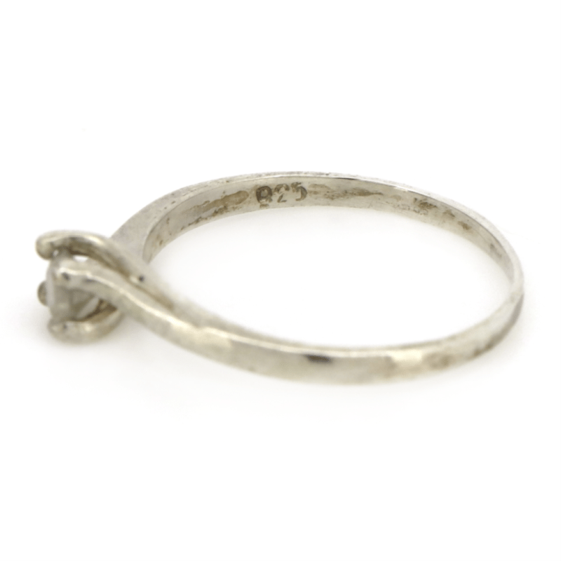 STERLING SILVER AND DIAMOND, SOLITAIRE RING. The Centre Features, One Round Brilliant Cut Diamond, Prong Set, Hallmarked 925. Weight Is 0.97Grams. Condition: Pre-Owned. Condition: Good - Refer Images 0645986+1407