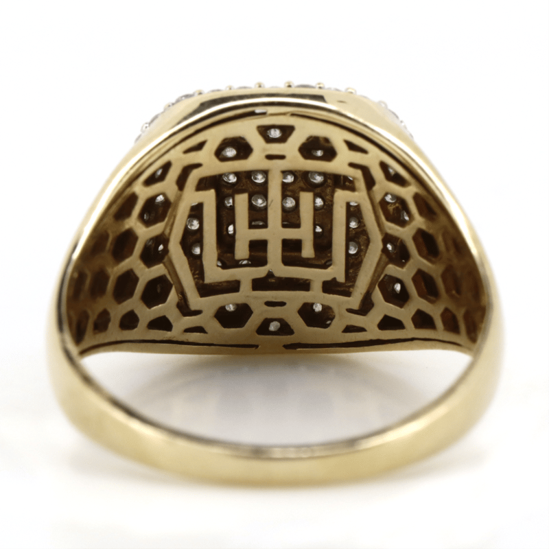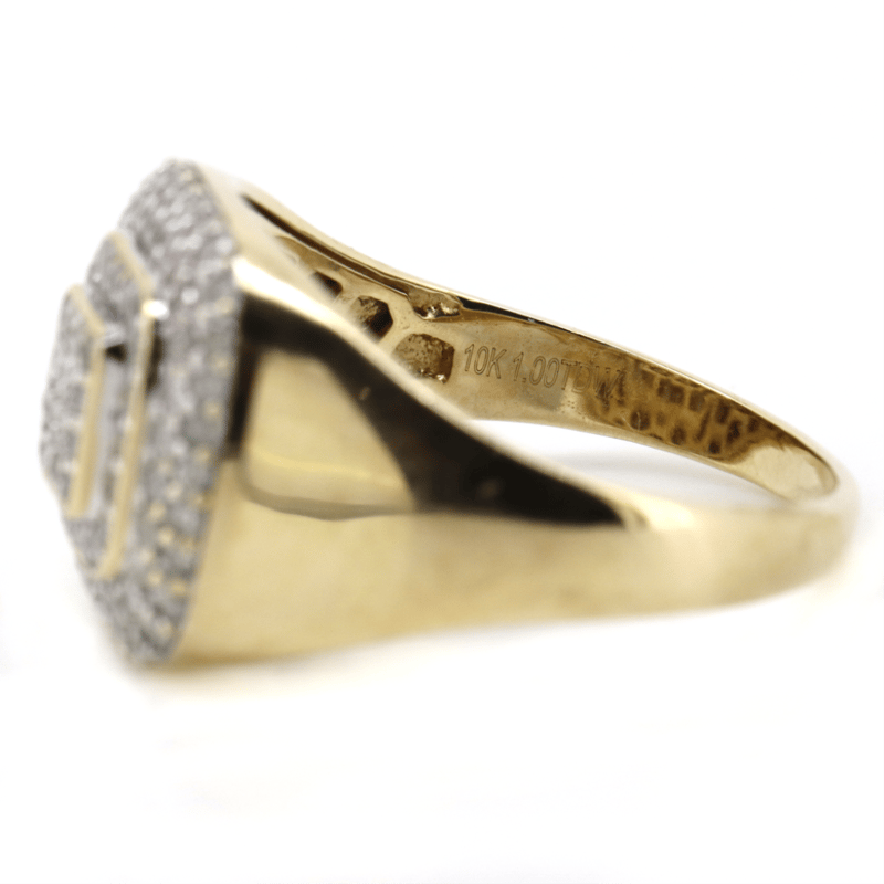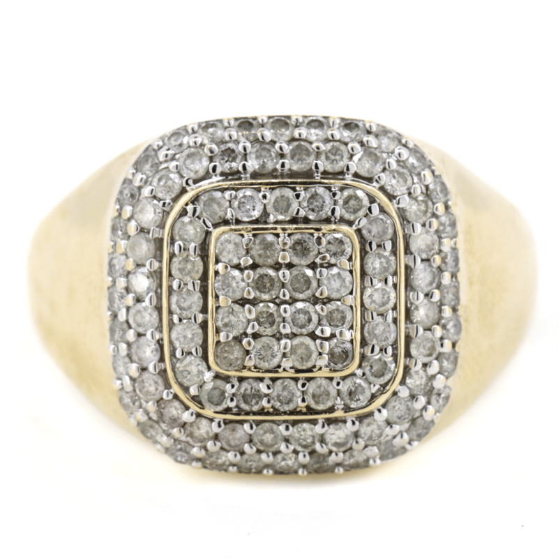 10K YELLOW GOLD AND DIAMOND, GENTS CLUSTER RING. The Ring Features, 95 Round Brilliant Cut, Diamonds, Claw Set. Ring Size V. Condition: Pre-Owned. Condition: Good - Refer Images 0645986+1463