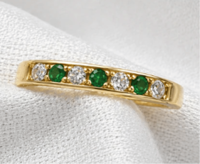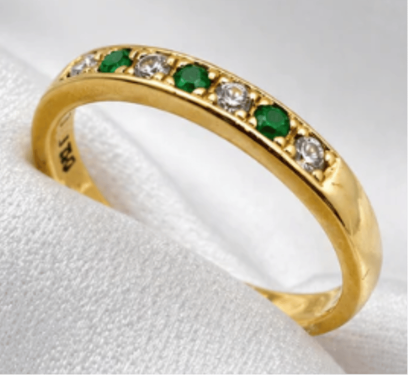 18K YELLOW GOLD GRAIN SET DIAMOND AND EMERALD RING