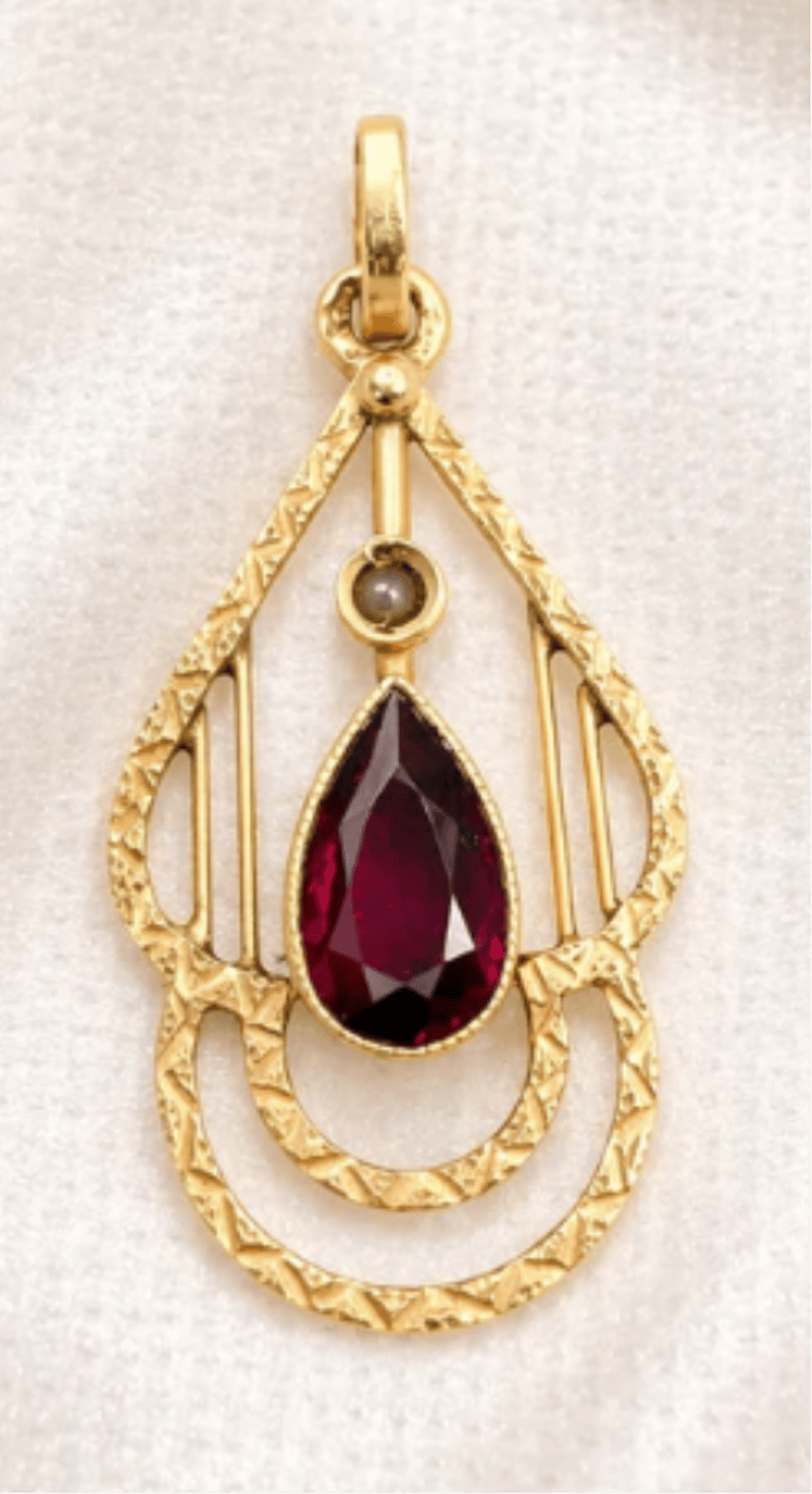 14K YELLOW GOLD PENDANT WITH PEAR GARNET