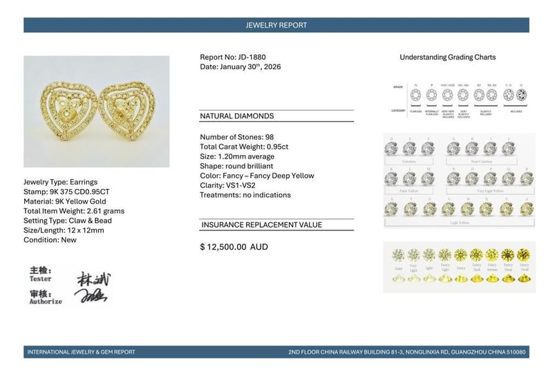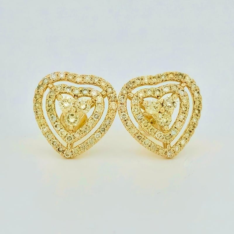 9CT YELLOW GOLD FANCY YELLOW DIAMOND HEART STUD EARRINGS