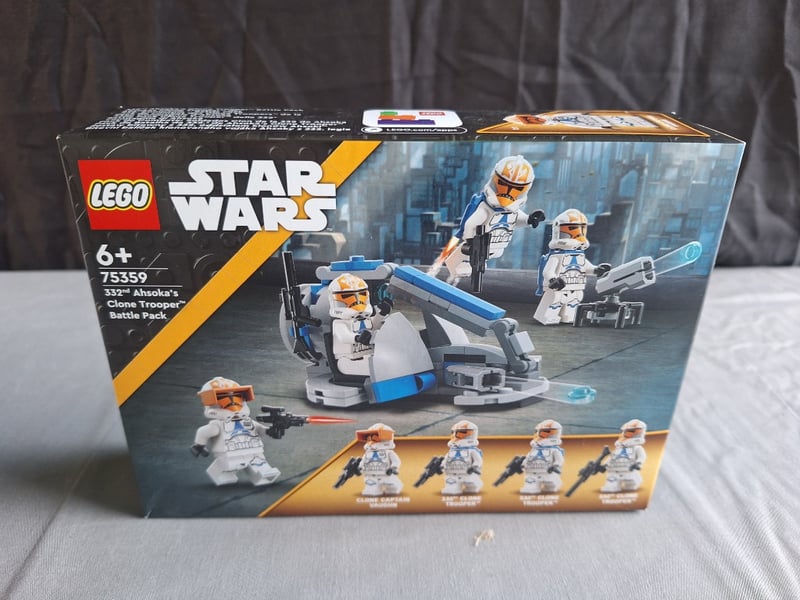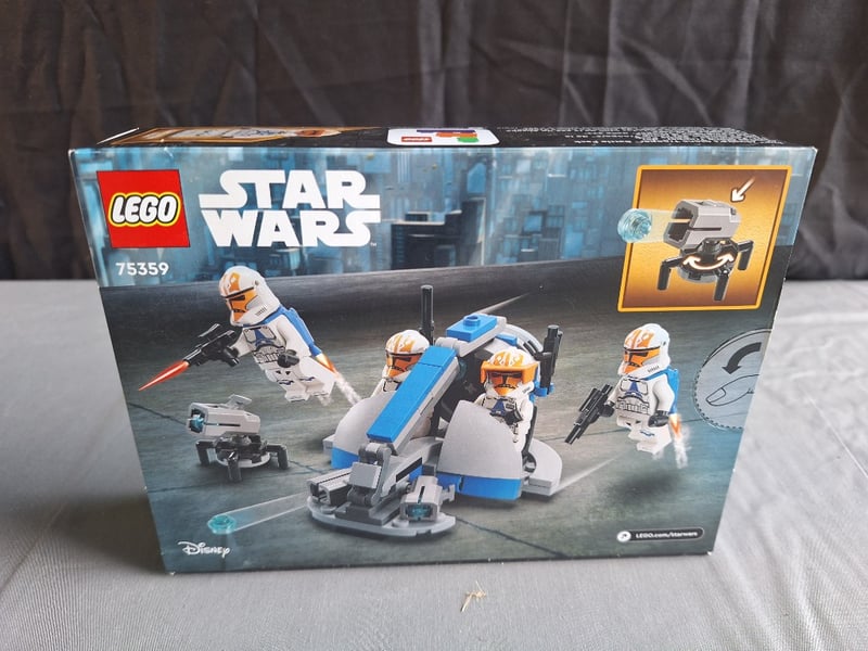 LEGO STAR WARS 75359 332ND AHSOKA'S CLONE TROOPER BATTLE PACKSealed Lego Star Wars Set 75359 Featuring 332Nd Ahsoka'S Clone Trooper Battle Pack With Four Minifigures In Blue And White Armour, Buildable At-Rt Walker With Articulated Legs And Rotating Cannon, Blaster Accessories, And Kyber Crystal Element. Original Packaging Intact With Minor Wear To Box Edges.Condition: Good - Refer To Images584570+544