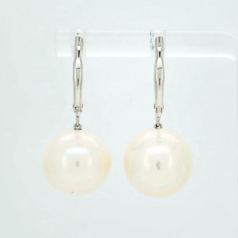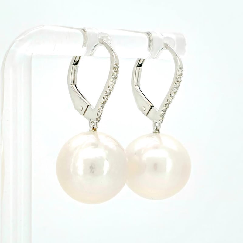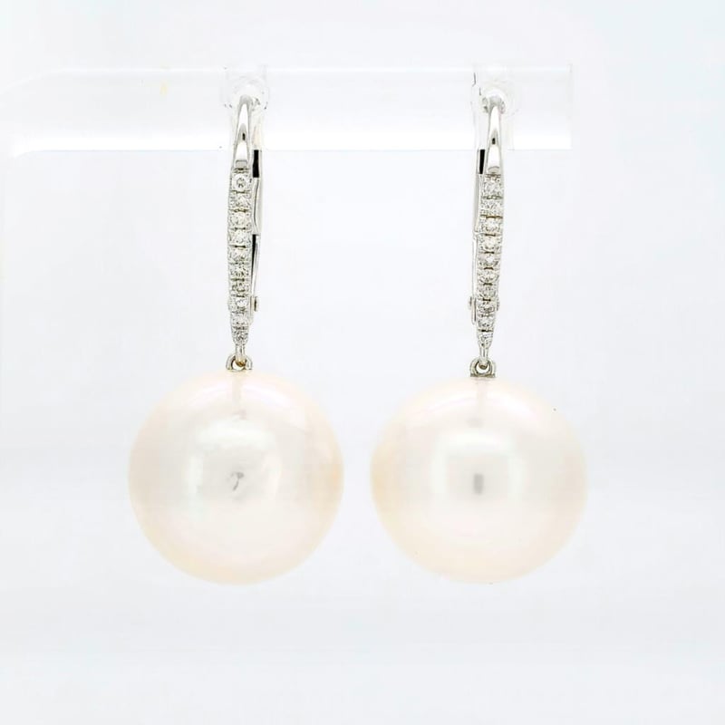 9CT WHITE GOLD SOUTH SEA PEARL AND DIAMOND DROP EARRINGS