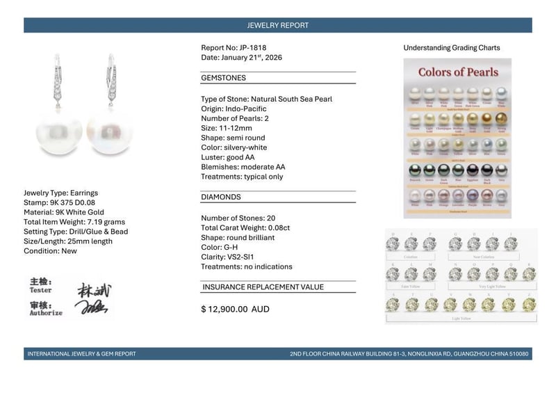 Featuring, 2 Silvery-White South Sea Pearls (11-12Mm Size, Aa Grade), With 20 Round Brilliant Cut Diamonds (0.08Ct Tdw, G-H Colour, Vs2-Si1 Clarity), Bead Set.