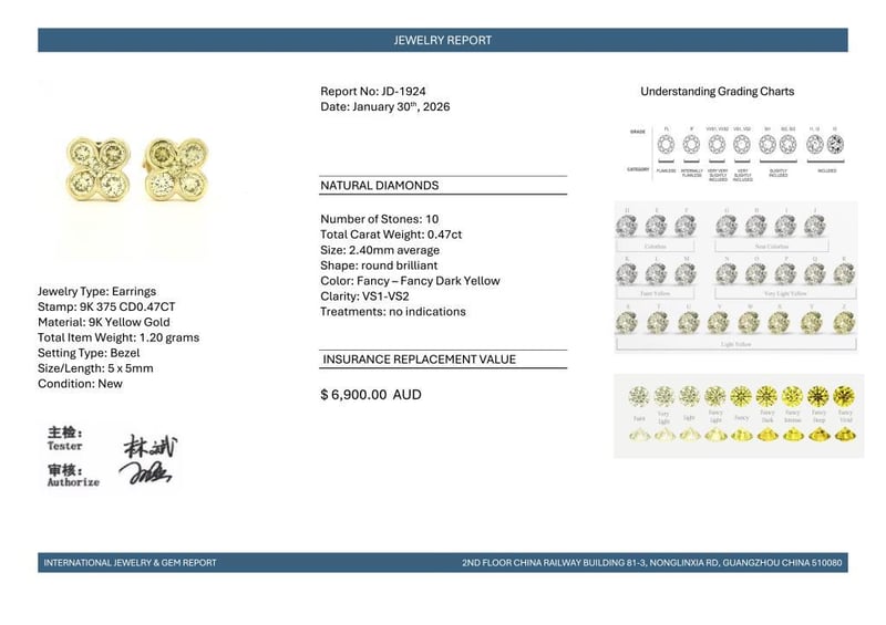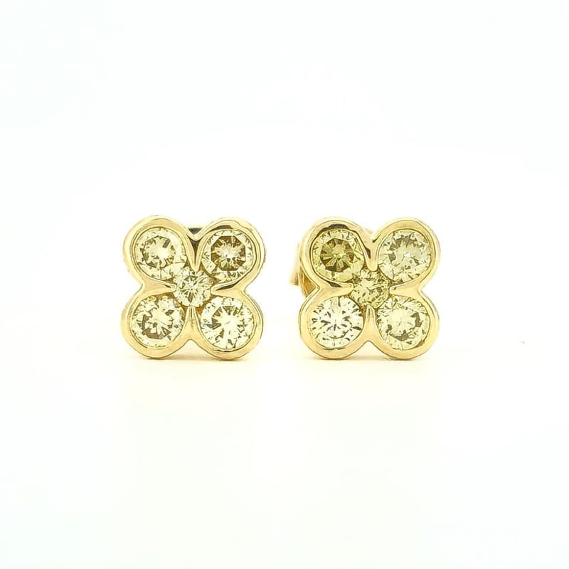 9CT YELLOW GOLD FANCY YELLOW DIAMOND FLORAL STUD EARRINGS
