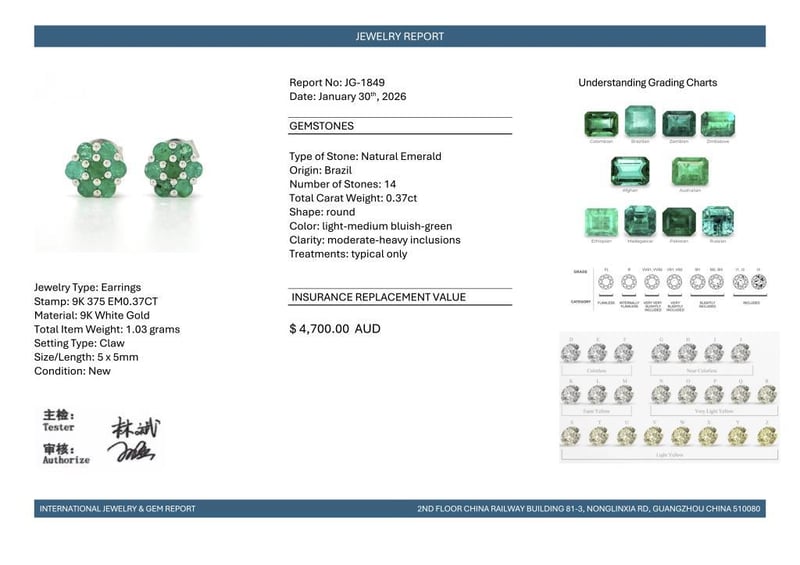 Featuring, 14 Round Cut, Light-Medium Bluish-Green Brazilian Emeralds (0.37Ct Tsw, Moderate-Heavy Inclusions), Claw Set.