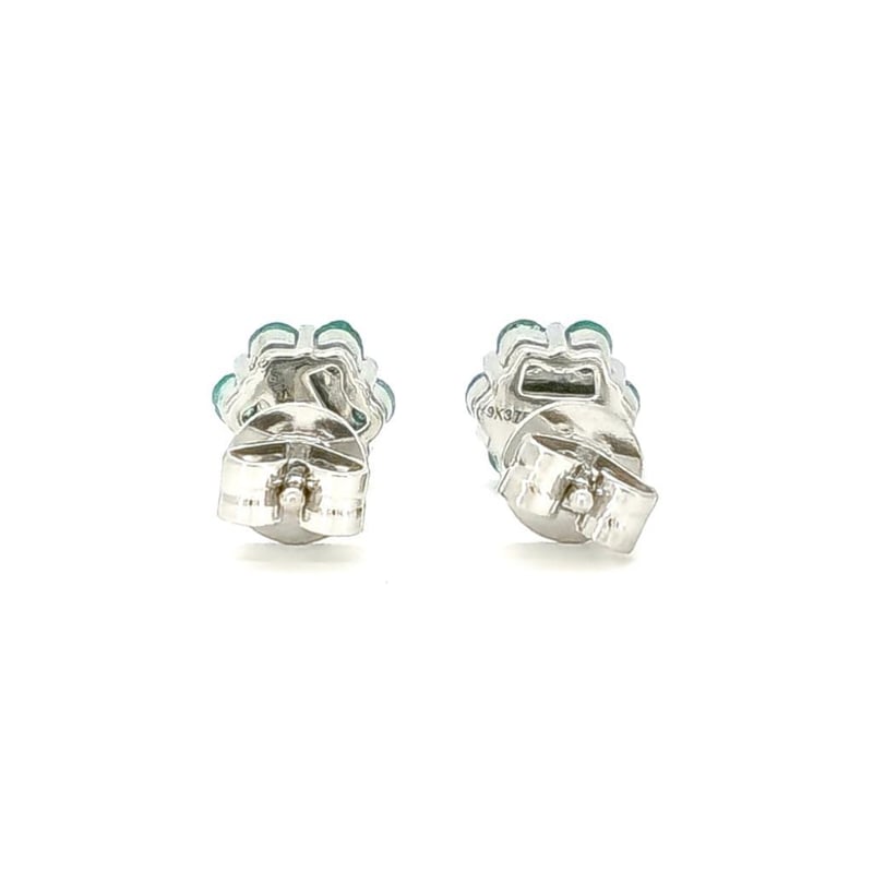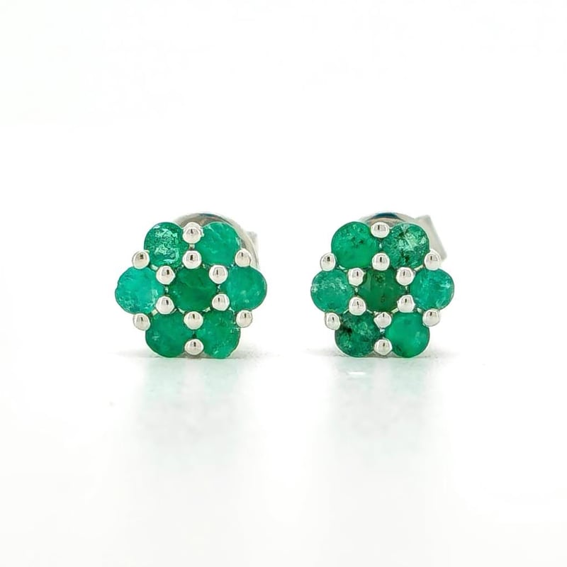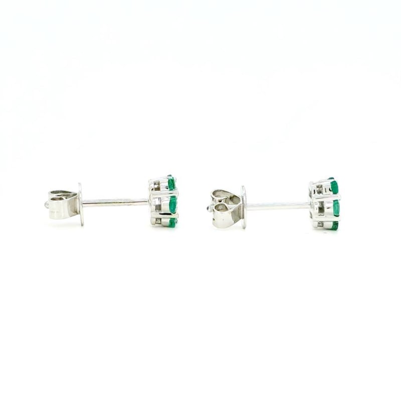 9CT WHITE GOLD BRAZILIAN EMERALD FLORAL STUD EARRINGS