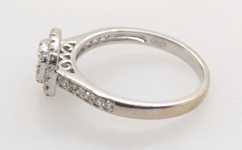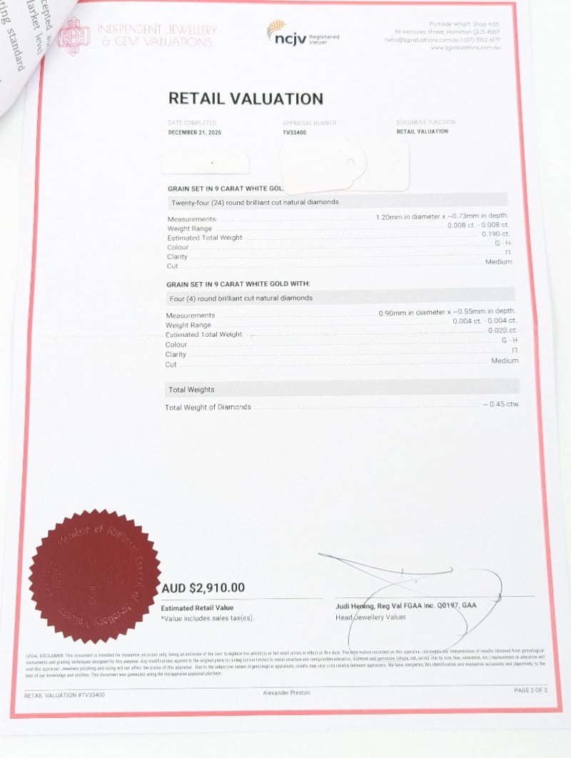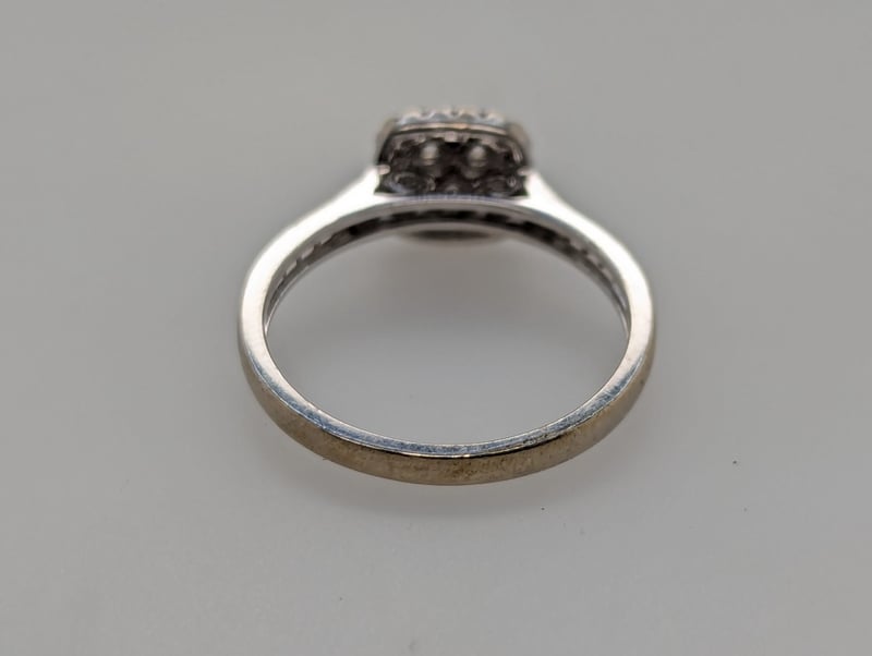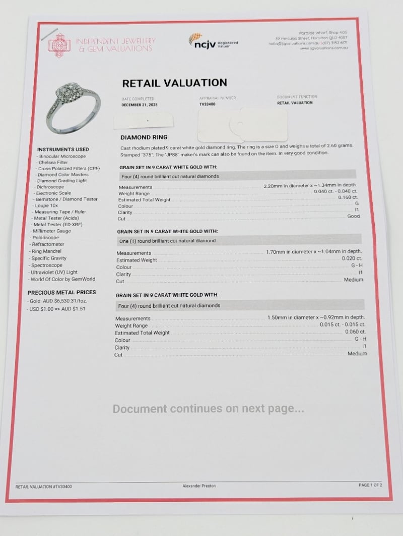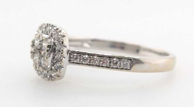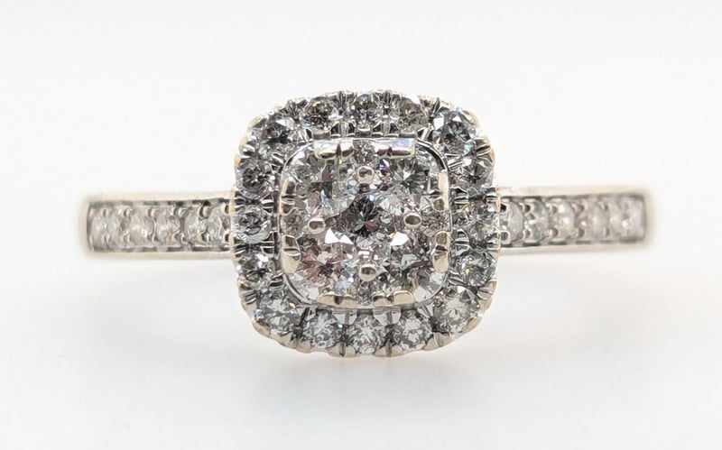 9K WHITE GOLD DIAMOND RING Ring Features Thirty-Seven Round Brilliant Cut Diamonds Of Various Sizes, Colours Approx: G-H, Clarity: I1Total Diamond Weight: ~0.45Ct Total Item Weight: 2.60g Markings: Stamped: 375 Condition: Good - Refer To Images Insurance Replacement Valuation Amount: $2,910.00 582958+11