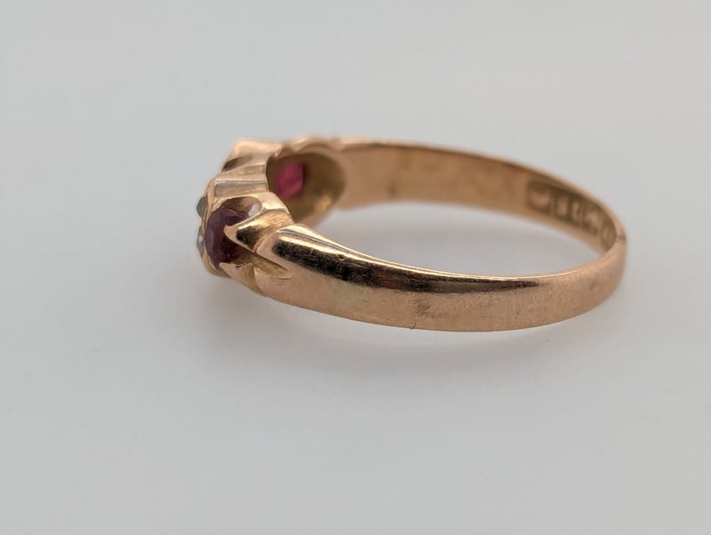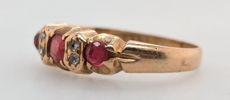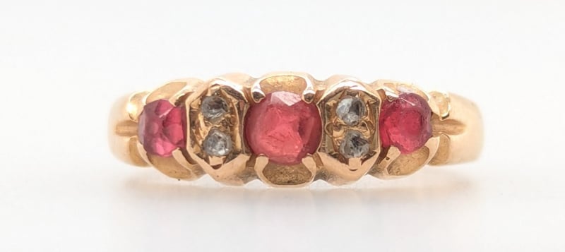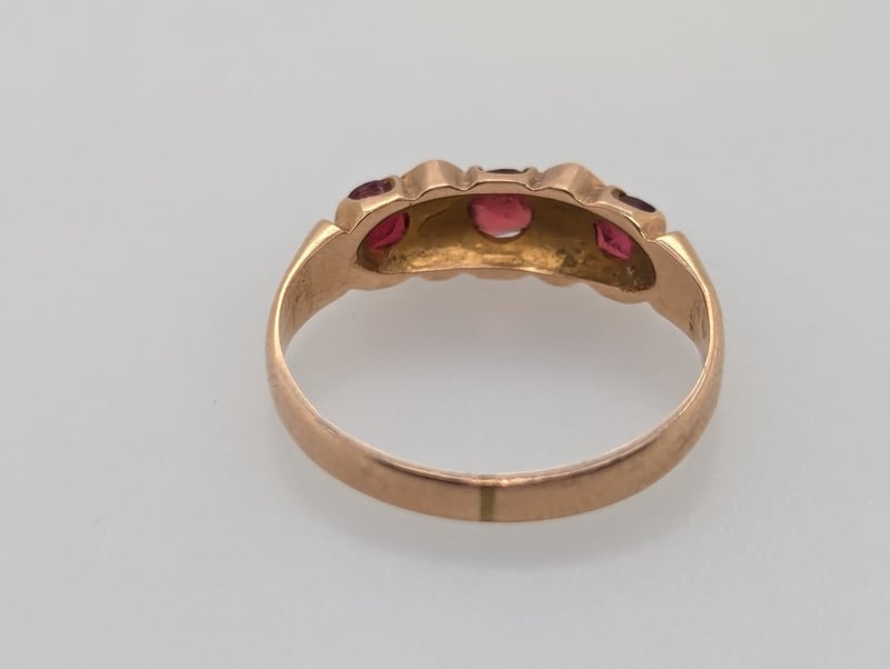 10K YELLOW GOLD GARNET AND SAPPHIRE RING Ring Features Three Round Cut Red Garnets In Four Claw Settings,Four Round Cut Sapphires Set Between Garnets Total Item Weight: 2.10g Markings: Stamped: 10K Condition: Good - Refer To Images 582958+16