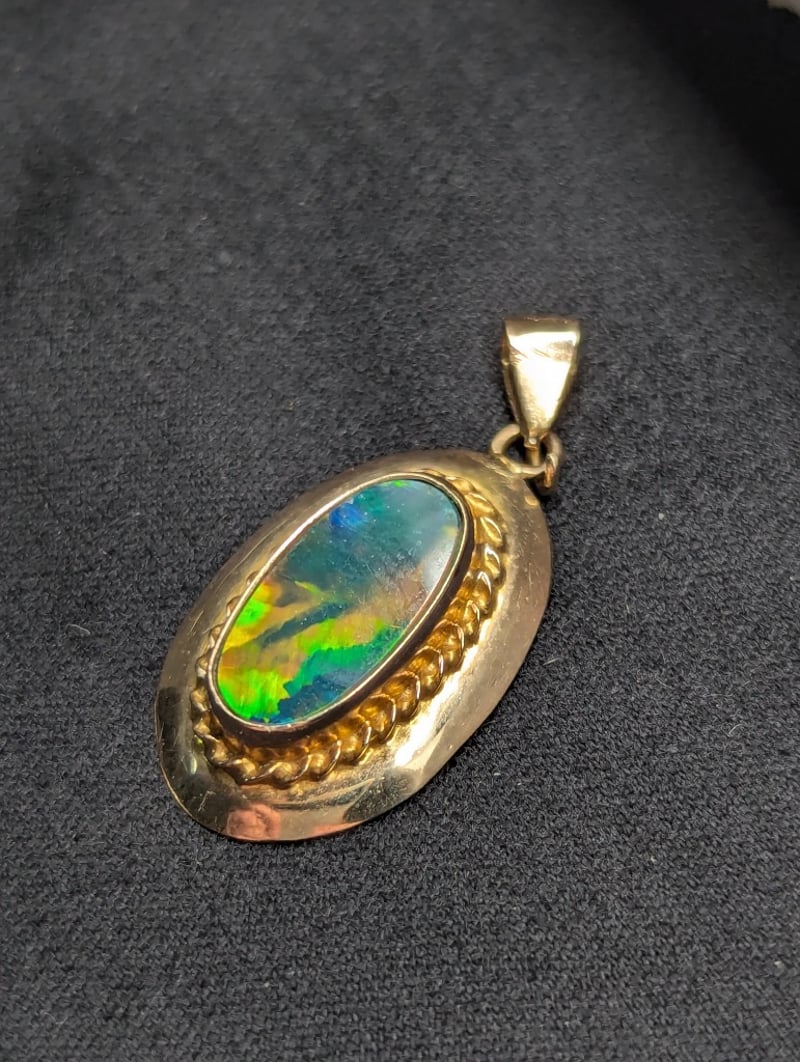 10K YELLOW GOLD OPAL SLICE STYLE PENDANT Total Item Weight: 1.68g Dimensions: Height: 20.00mm, Width: 13.00mm Condition: Good - Refer To Images 582958+22