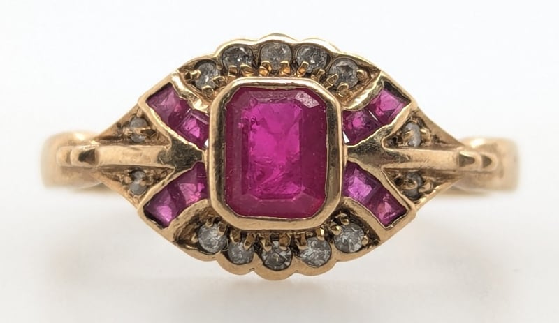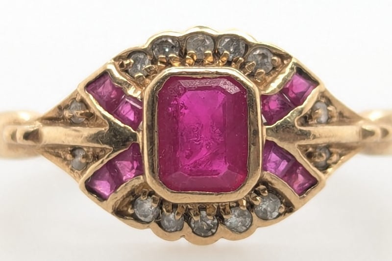 Ring Features Rectangle Cut Ruby In Centre Setting,