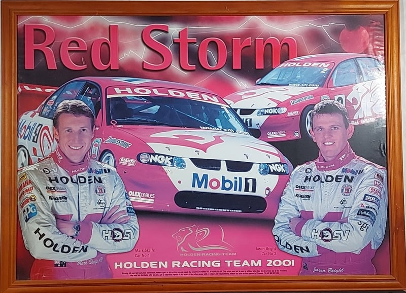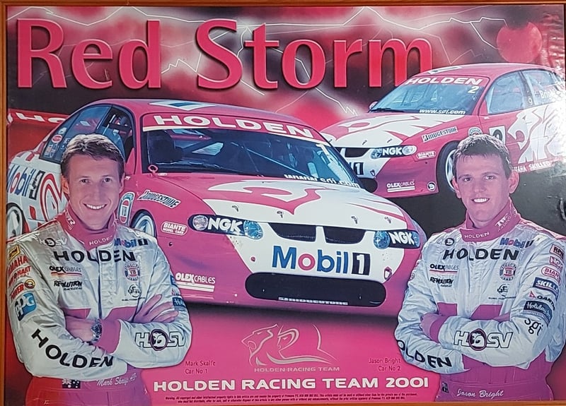 UNKNOWNLithographic Print On PaperTitle: Red Storm - Holden Racing Team 2001Image Size: 58cm x 81cmFrame Size: 66cm x 89cmEdition: NoneSignature Details: Signed By Mark Skaife And Jason Bright (Printed Signatures)"Holden Racing Team 2001" Text; Car No 1 And Car No 2 Designations; Mobil, Ngk, And Sponsor Logos VisibleCondition: Good - Refer To ImagesProvenance: This Poster Commemorates The Iconic Holden Racing Team'S 2001 V8 Supercar Campaign, Featuring Drivers Mark Skaife (Car No 1) And Jason Bright (Car No 2). The "Red Storm" Branding Represents The Team'S Competitive Presence In Australian Motorsport During This Era. Holden Racing Team Was A Dominant Force In V8 Supercars, And This Promotional Material Captures The Professional Racing Heritage Of Early 2000S Australian Motorsport.Condition: Good548680+4