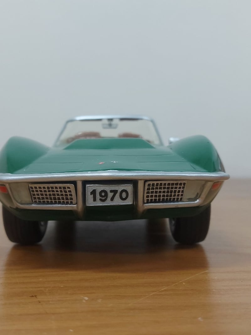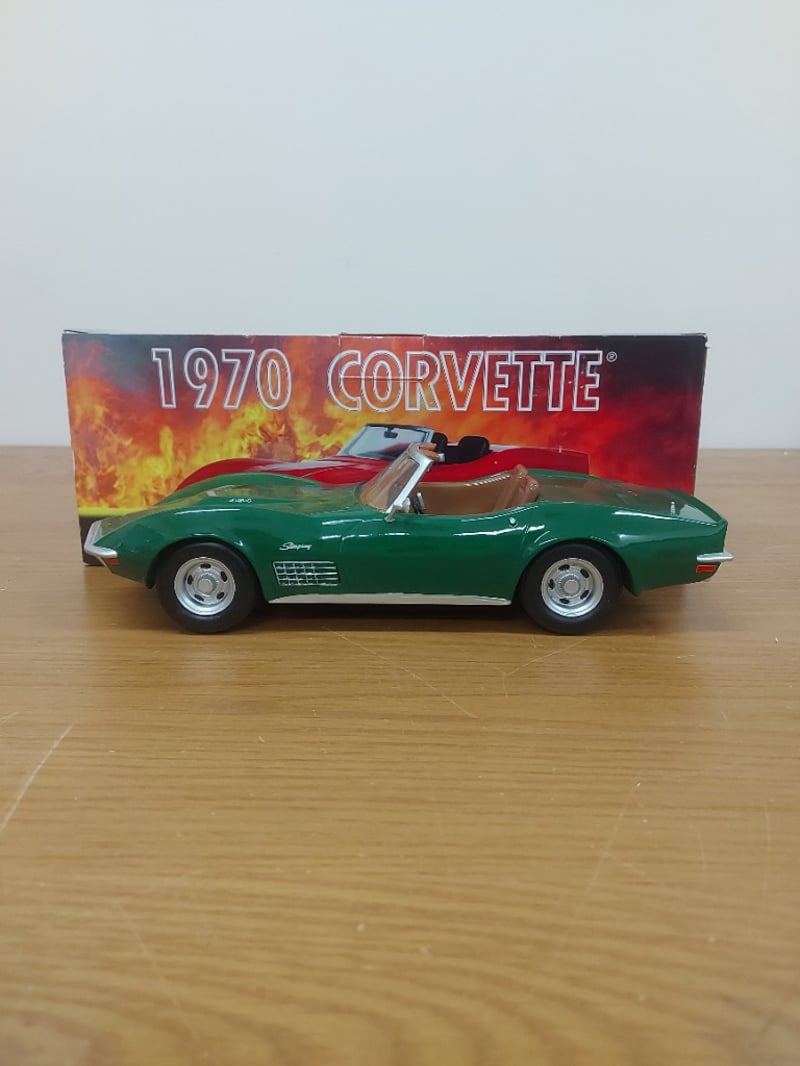 Detailed Model Of A 1970 Chevrolet Corvette Convertible In Striking Green With Brown Interior.