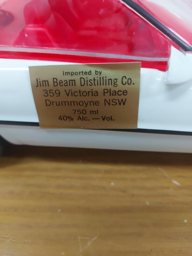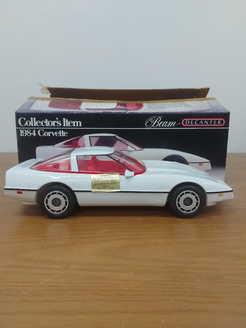 White And Red Jim Beam Decanter Modeled As A 1984 Chevrolet Corvette, Contents Still Inside