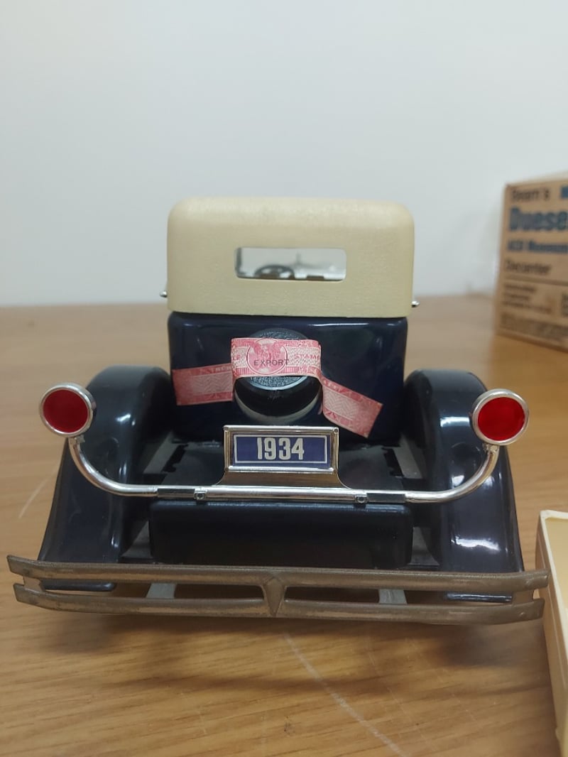 BEAM'S MODEL J DUESENBERG ACD MUSEUM EDITION DECANTER - 1934Item Size: Height: 20cm, Width: 48cm, Depth: 18cm, Weight: 2KgBeam'S Kentucky Straight Bourbon Whiskey Decanter In The Form Of A 1934 Duesenberg Model J Automobile.Condition: Good - Refer To Images584569+30