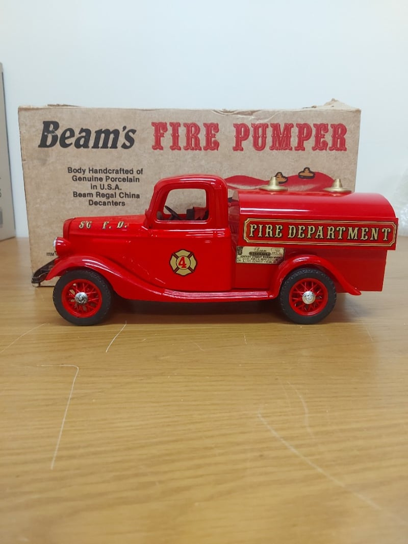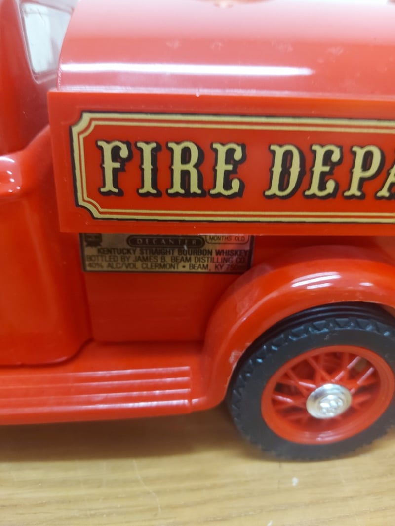Beam'S Fire Pumper Ceramic Decanter Featuring. Contents Still Inside