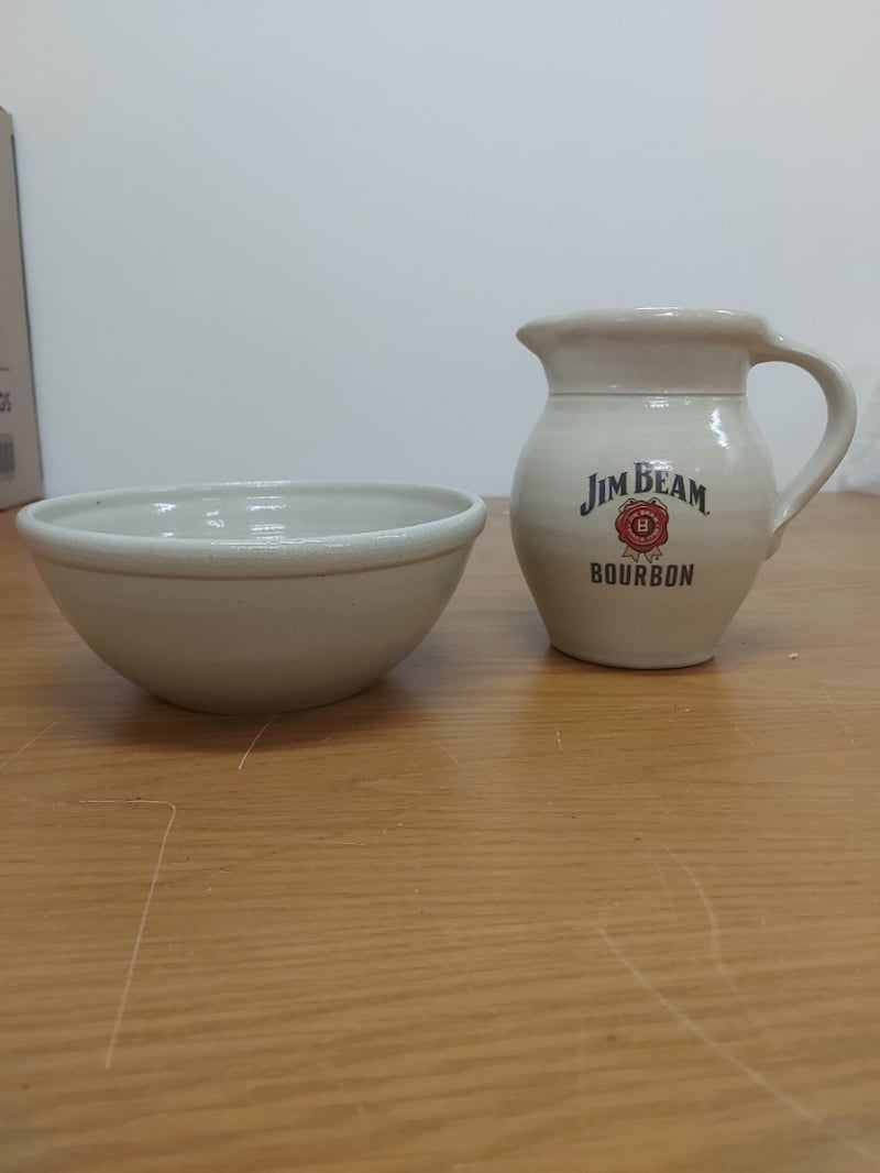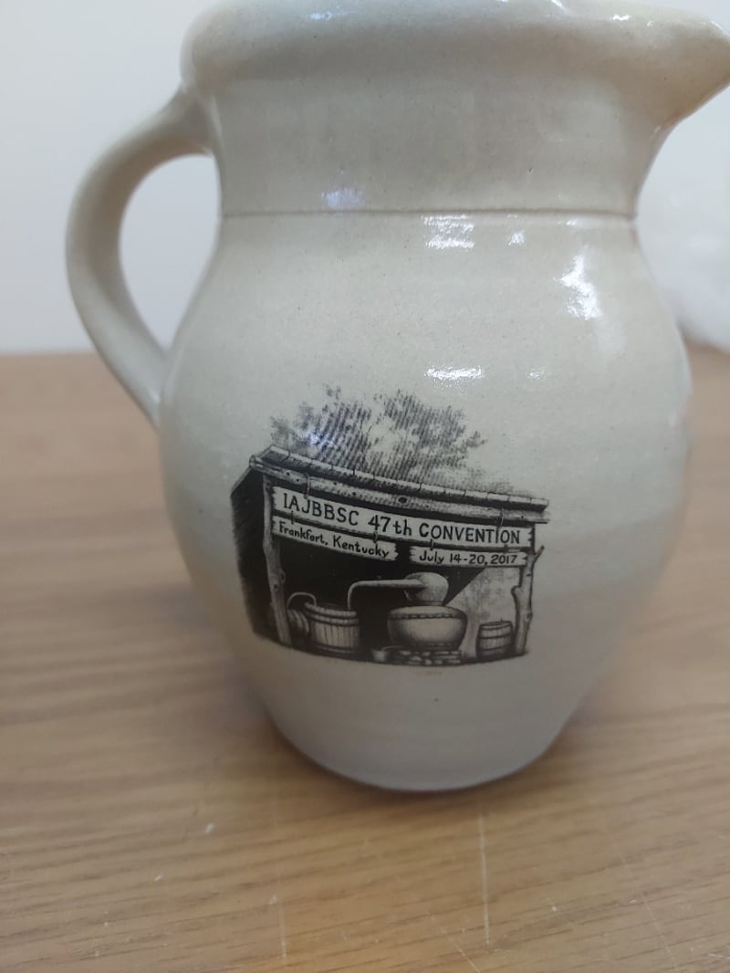JIM BEAM BOURBON CERAMIC PITCHER AND BOWL SET WITH TAJBBSC CONVENTION COMMEMORATIVE PITCHERCeramic Barware Set Comprising A Jim Beam Bourbon Branded Cream Pitcher With Red Seal Logo, A Matching Plain Ceramic Bowl, And A Commemorative Tajbbsc 47Th Convention Pitcher From Frankfort, Kentucky (July 14-20, 2017) Featuring Distillery Imagery.Condition: Good - Refer To Images584569+44