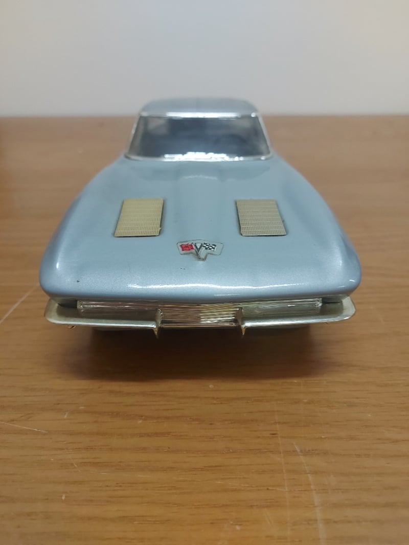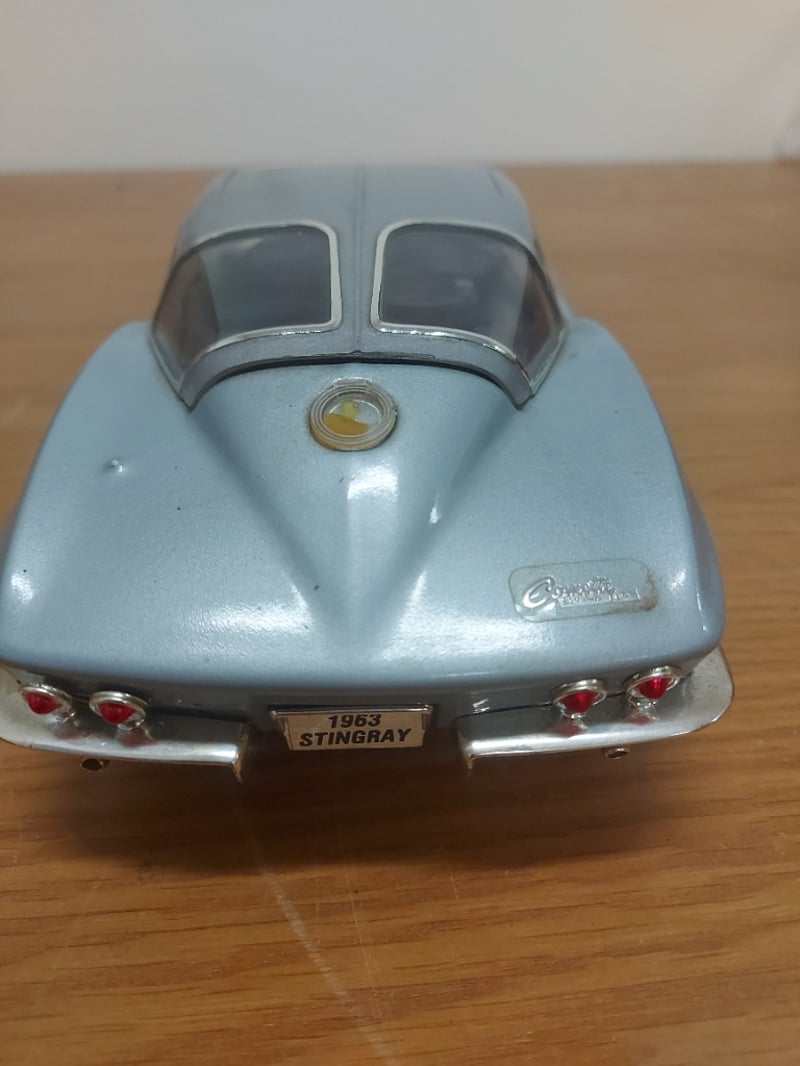 1963 CORVETTE STINGRAY MODEL BY DANBURY MINT DECANTERItem Size: Height: 10cm, Width: 30cm, Depth: 20cm, Weight: 2KgReplica Of The Iconic 1963 Chevrolet Corvette Stingray In Pale Blue With Contrasting Black Hood Stripes.Condition: Good - Refer To Images584569+46