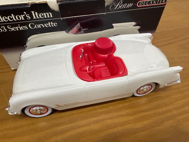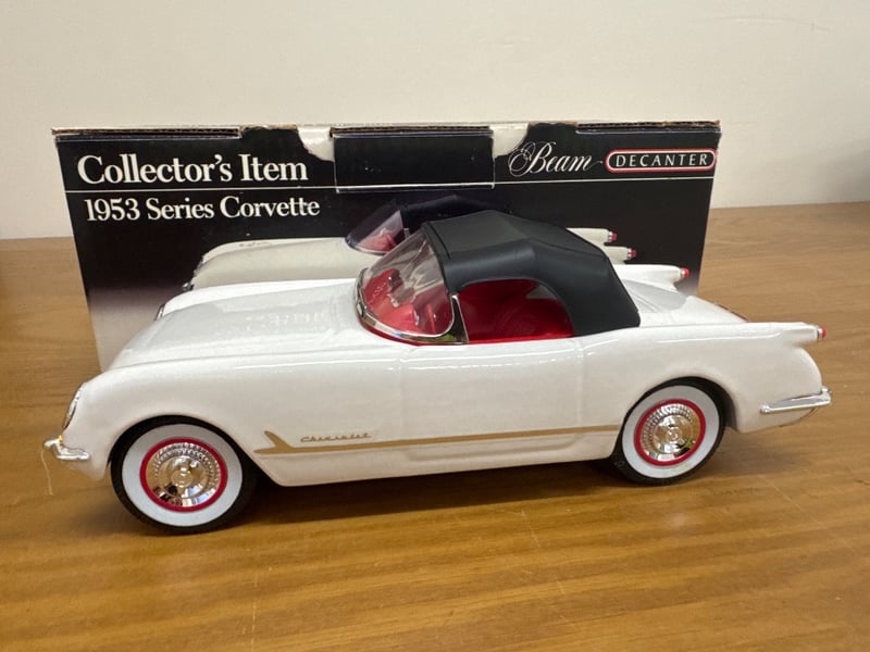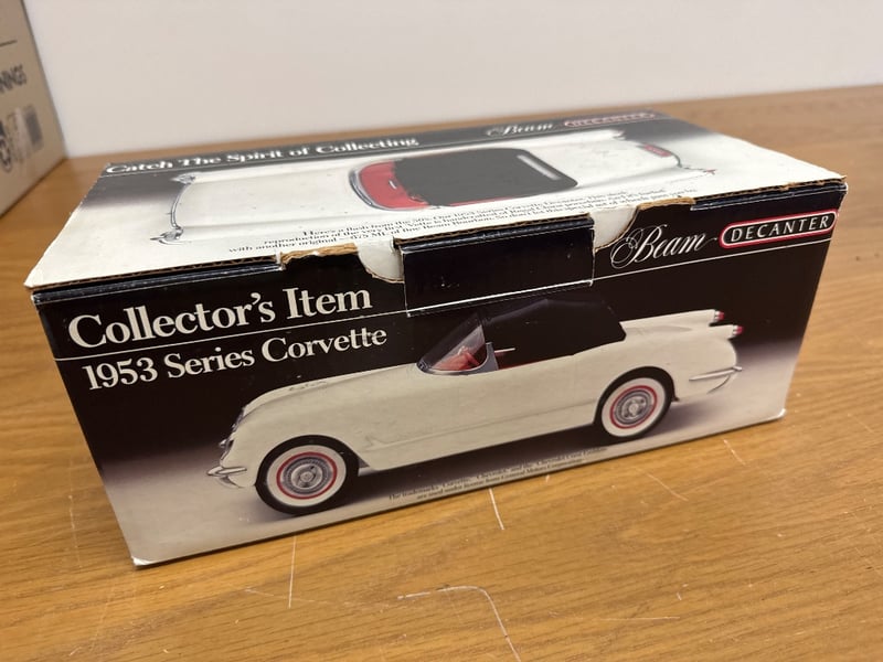 BEAM DECANTER 1953 SERIES CORVETTE COLLECTOR'S ITEMNOTE: FRONT WHEELS ARE NOT ATTACHEDItem Size: Height: 13cm, Width: 32cm, Depth: 16cm, Weight: 2KgCondition: Fair - Refer To Images584569+56