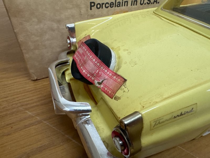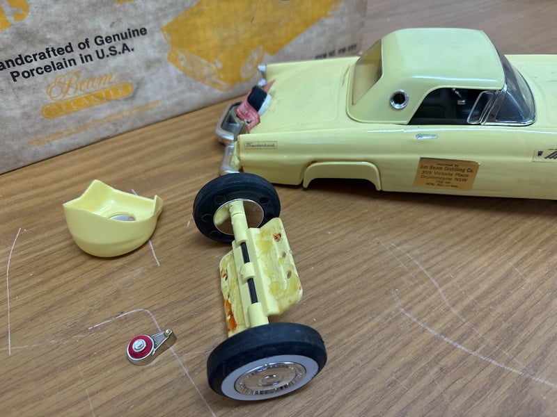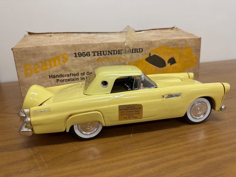 BEAMS 1956 FORD THUNDERBIRD DECANTER CAR - YELLOWNOTE: SOME PARTS MAY NOT BE ATTACHED AND CONTENTS MAY STILL BE PRESENTItem Size: Height: 14.5cm, Width: 22cm, Depth: 42cm, Weight: 3KgCondition: Fair - Refer To Images584569+58