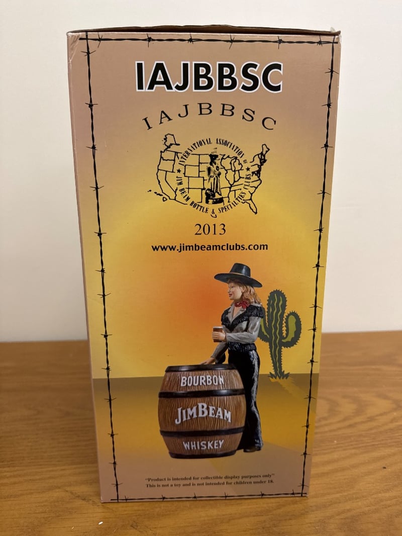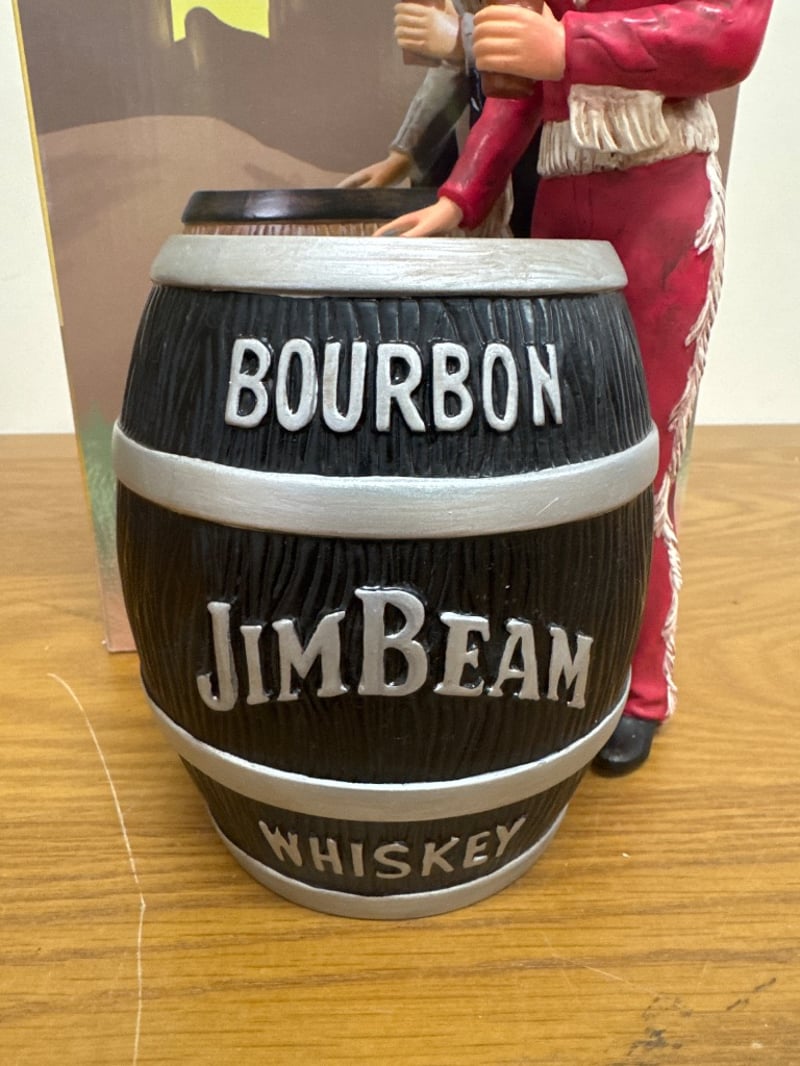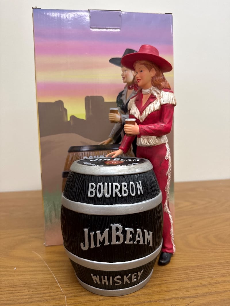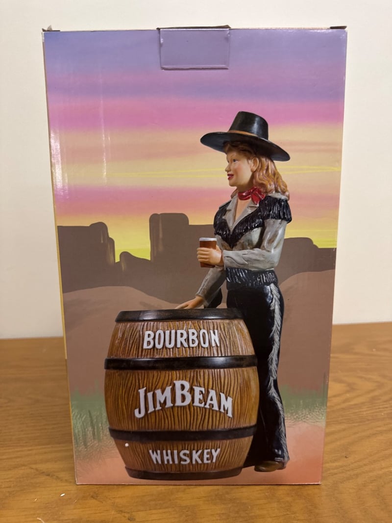 JIM BEAM BOURBON WHISKEY COWGIRL BARREL DECANTER - REDItem Size: Height: 36cm, Width: 21cm, Depth: 18cm, Weight: 2KgCondition: Good - Refer To Images584569+64