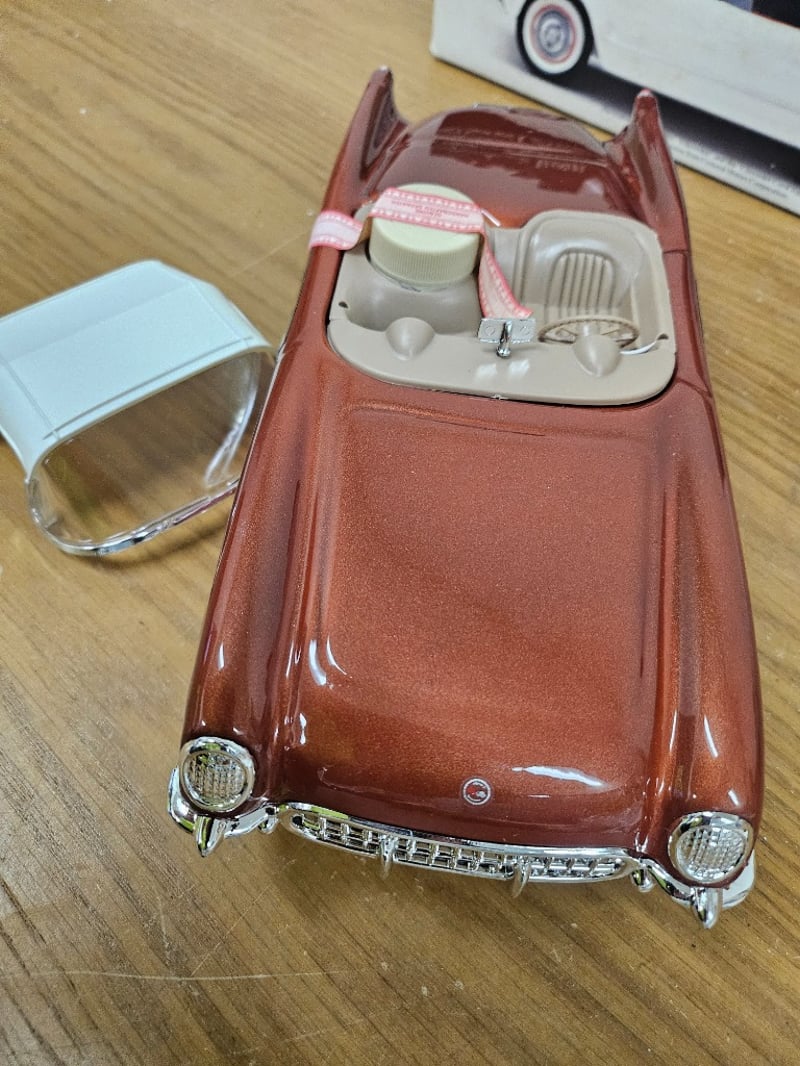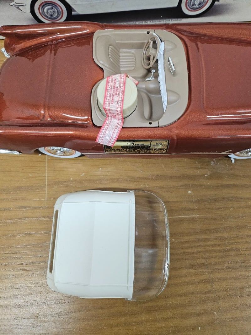 1953 Chevrolet Corvette Convertible In Burnt Orange With White-Wall Tyres, Cream Interior, Opening Hood And Doors, Accompanied By Original Beam Decanter 1955 Packaging And Cream Ceramic Stopper With Pink Ribbon Seal.