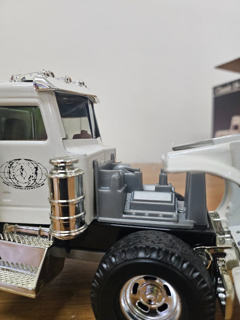 Collectible Jim Beam Ceramic Whiskey Decanter Featuring A White Semi-Truck Cab With Chrome Colored Detailing
