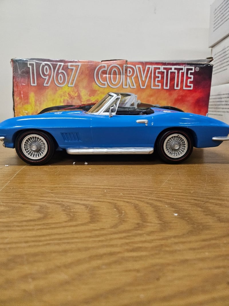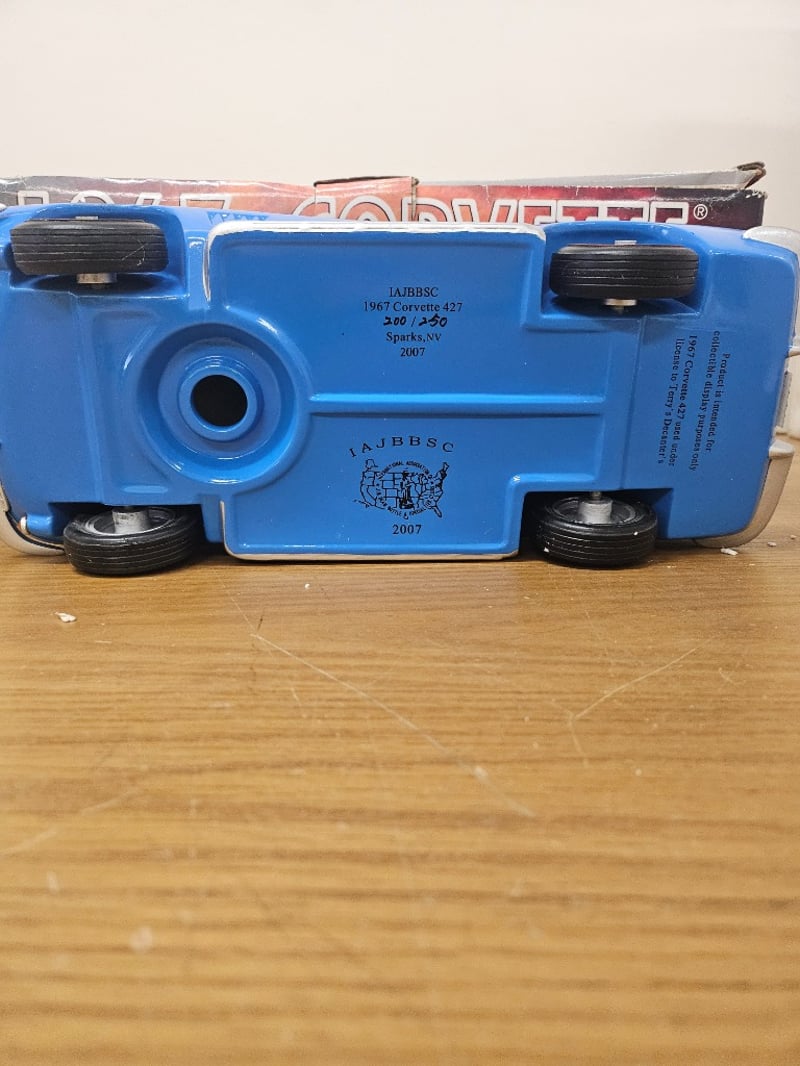 1967 CHEVROLET CORVETTE CONVERTIBLE DIE-CAST MODEL DECANTER - IIAJBBSC LIMITED EDITIONItem Size: Height: 25cm, Width: 35cm, Depth: 20cm, Weight: 1KgDetailed Die-Cast Model Of A 1967 Chevrolet Corvette 427 Convertible In Striking Blue Finish With Opening Hood, Authentic Chrome Colored Detailing, Wire-Spoke Wheels, And Original Packaging.Condition: Good - Refer To Images584569+261