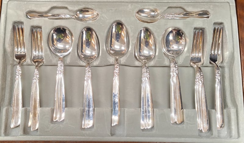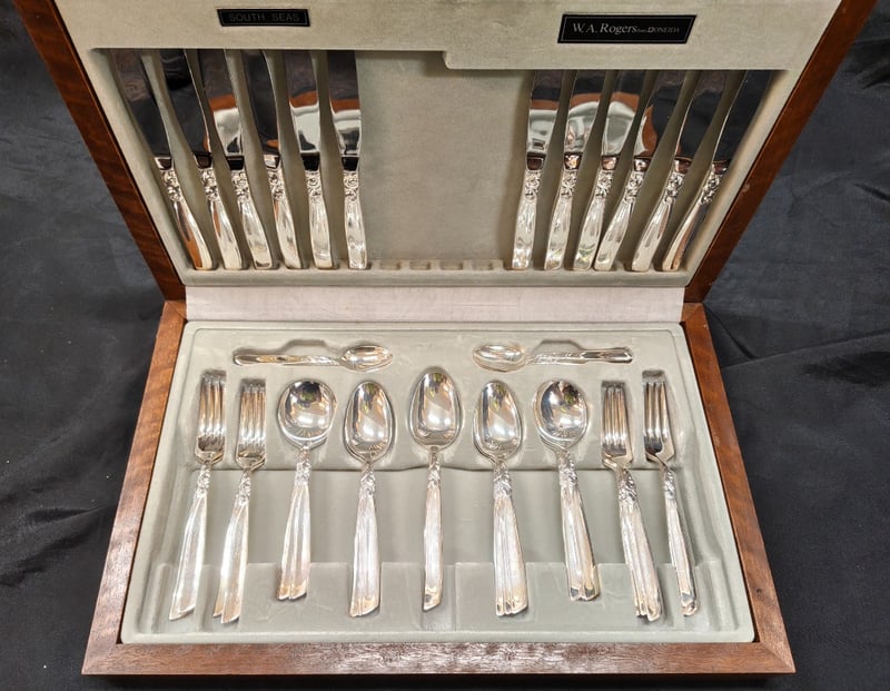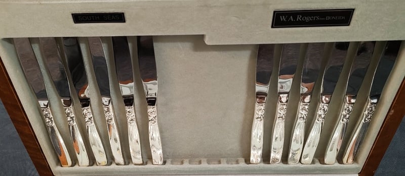 Contains Spoons, Forks, Knives And Teaspoons In A Wooden Showcase Box.