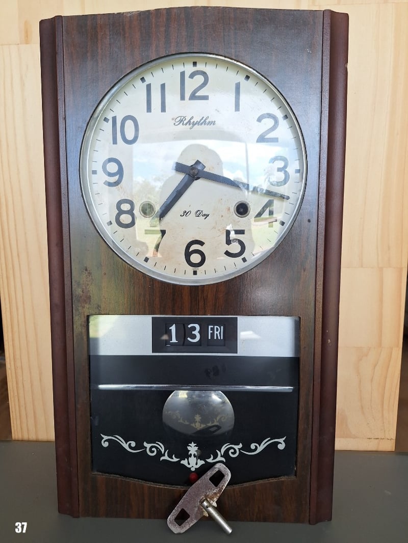 RHYTHM CHIMING 30 DAY TIMBER WALL CLOCK.