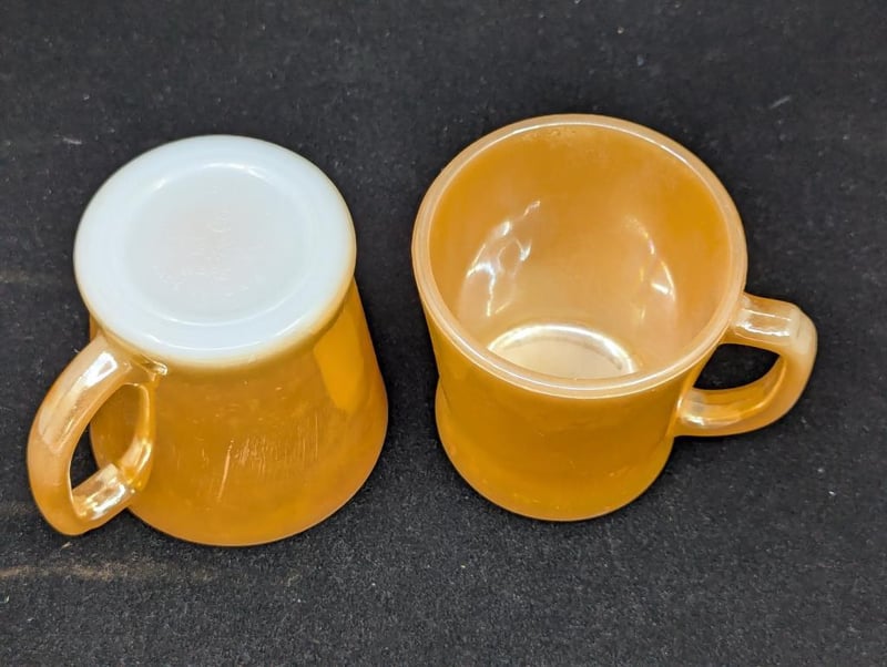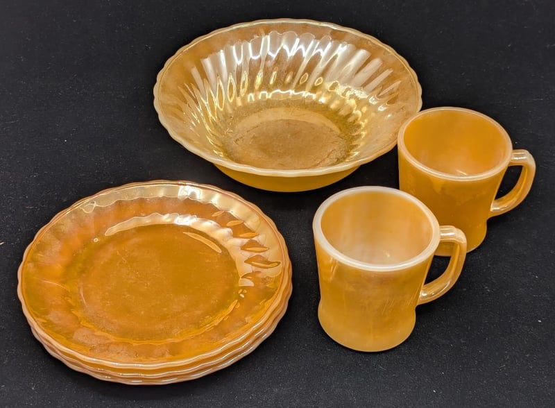 COLLECTION OF ANCHOR HOCKING TABLEWARE ITEMS Items Include Plates, Bowl And Mugs, Items Feature Orange Exterior With Light Oil Sheen Style Design 587964+46